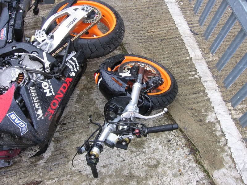 Mate, what can I say. Firstly, I'm glad you can write up the story. However...jesus. That sounded like a nasty one. Why the loss of grip? Surface or just too many beans? This isn't your first major off though is it? Not just a knee-jerk reaction to giving up the riding? How about just keeping a bike for the track?