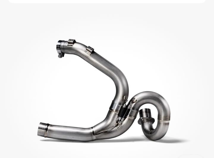 I was recently perving on the below titanium Akrapovic header for my Scrambler. Like for like replacement. No catalyst as thats in the back box so a hollow pipe.