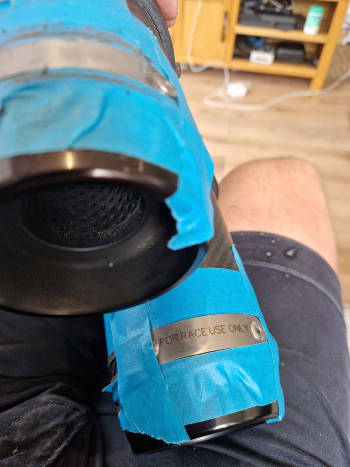 Many years ago i had a German Carbon end can on a fireblade which was clearly not for road use. i purchased a nice silver sticker off ebay with a number on which was very similar to an engraved end part !!