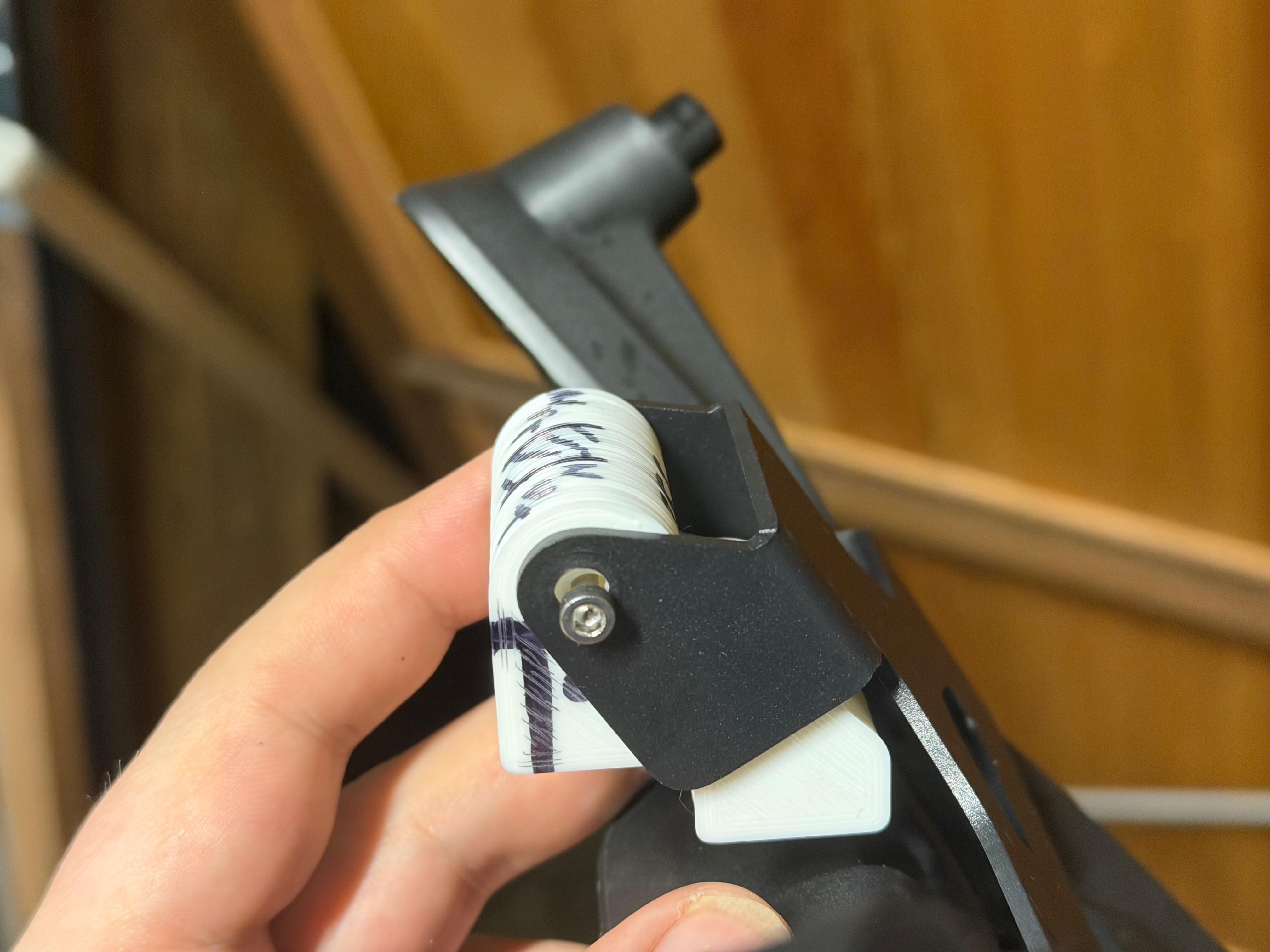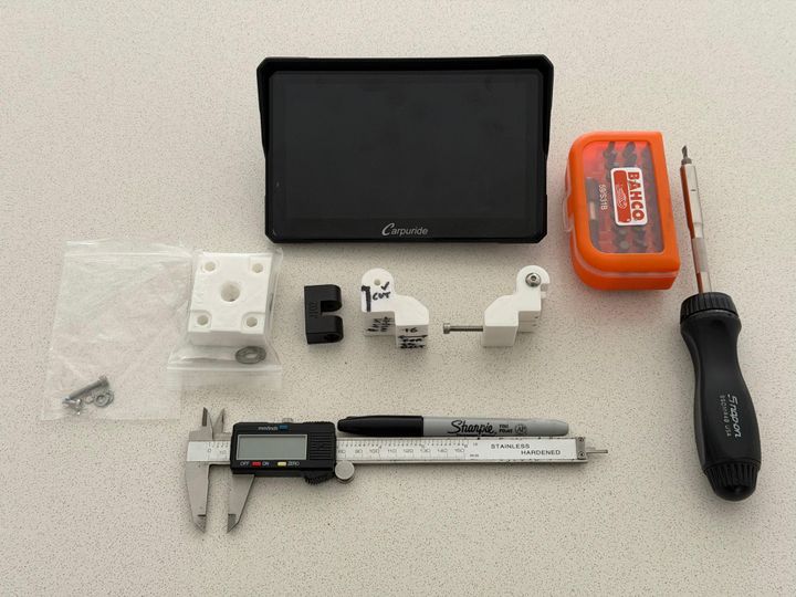 I've (rough) 3d printed a chain slack measurement tool, as that was missing from the toolkit, a stop button cover I found online to prevent further disc lock damage, and currently refining an adapter block to move the (arguably too large) Carpuride unit towards the screen a bit, and down a little - it was a stretch away on the GS, and now it feels like it's in my face