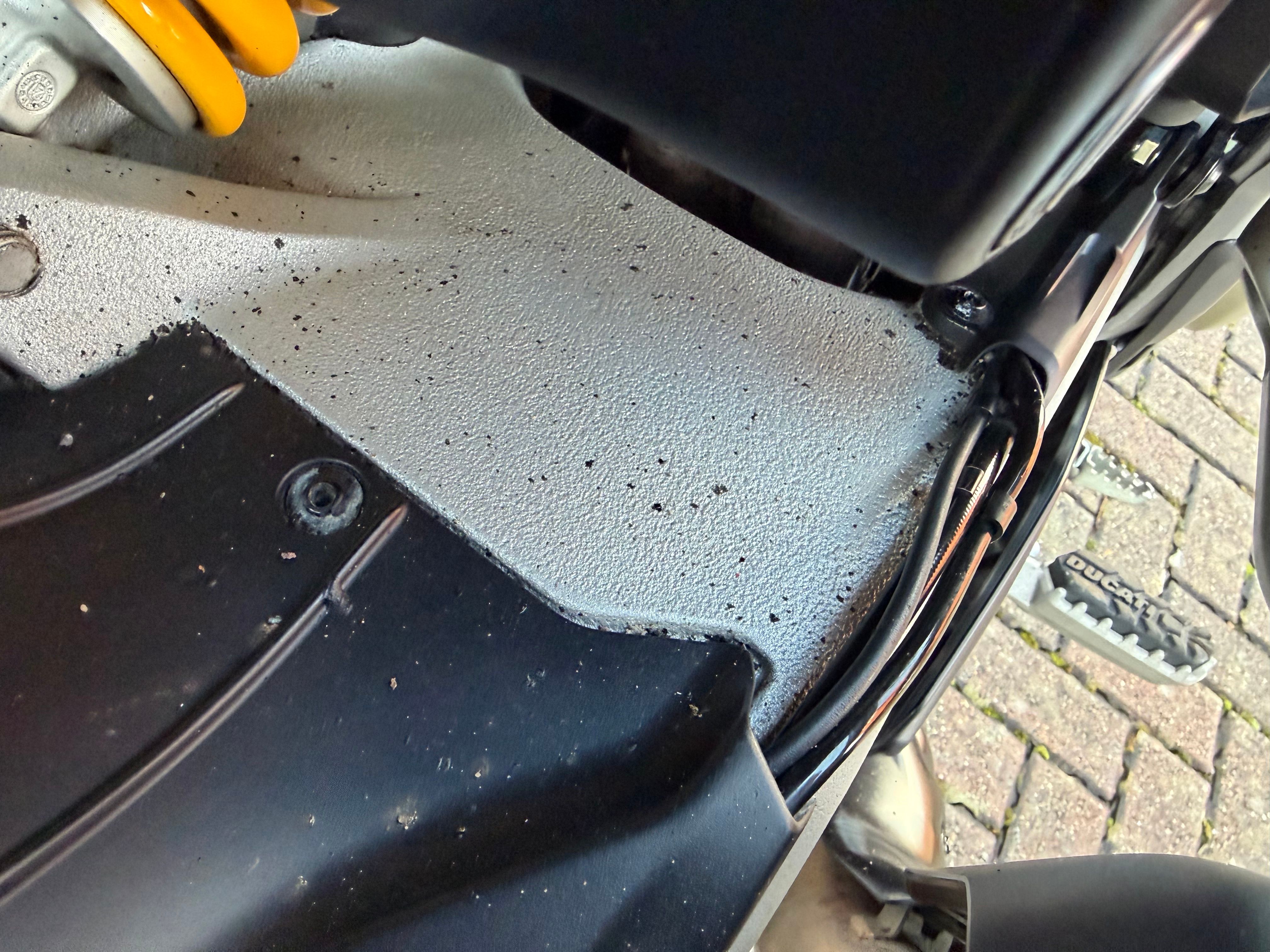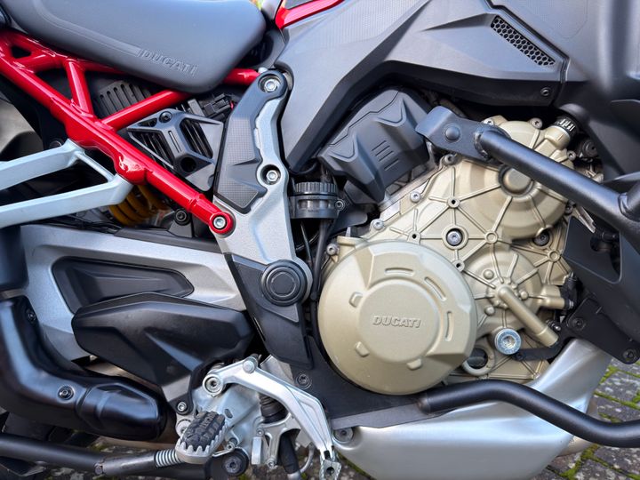 ) and unearthed both previous owners - the first had it for 22k miles from new until late 2024, and one from then until the tail end of last year. Both reported little to no issues and filled me with confidence. The bike was delivered last Tuesday and exactly as described - top notch service from J&L Motorcycles in Carlisle. It has a little damage on both sides of the carbon front mudguard from disc locks, but my friend who makes F1 carbon should be able to make them look even more subtle & strengthen. There's stone chip peppering on the swingarm between the shock and the rear wheel, and a couple of small chips on the RH gold engine cover, which I might touch up to prevent the finish lifting - otherwise pretty much immaculate, amazing for 28k miles - they do them well.