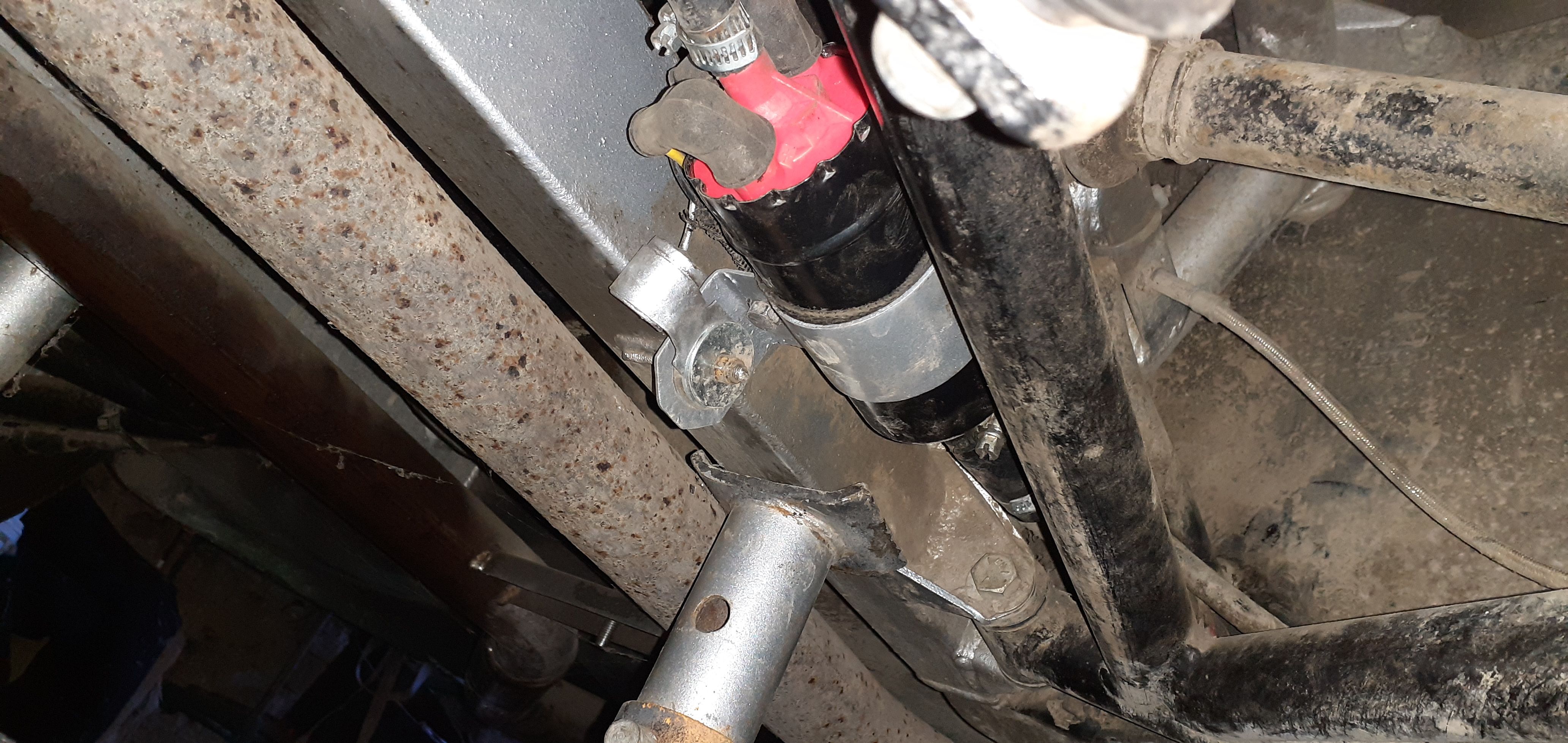 Nice shiny red topped fuel pump in place.