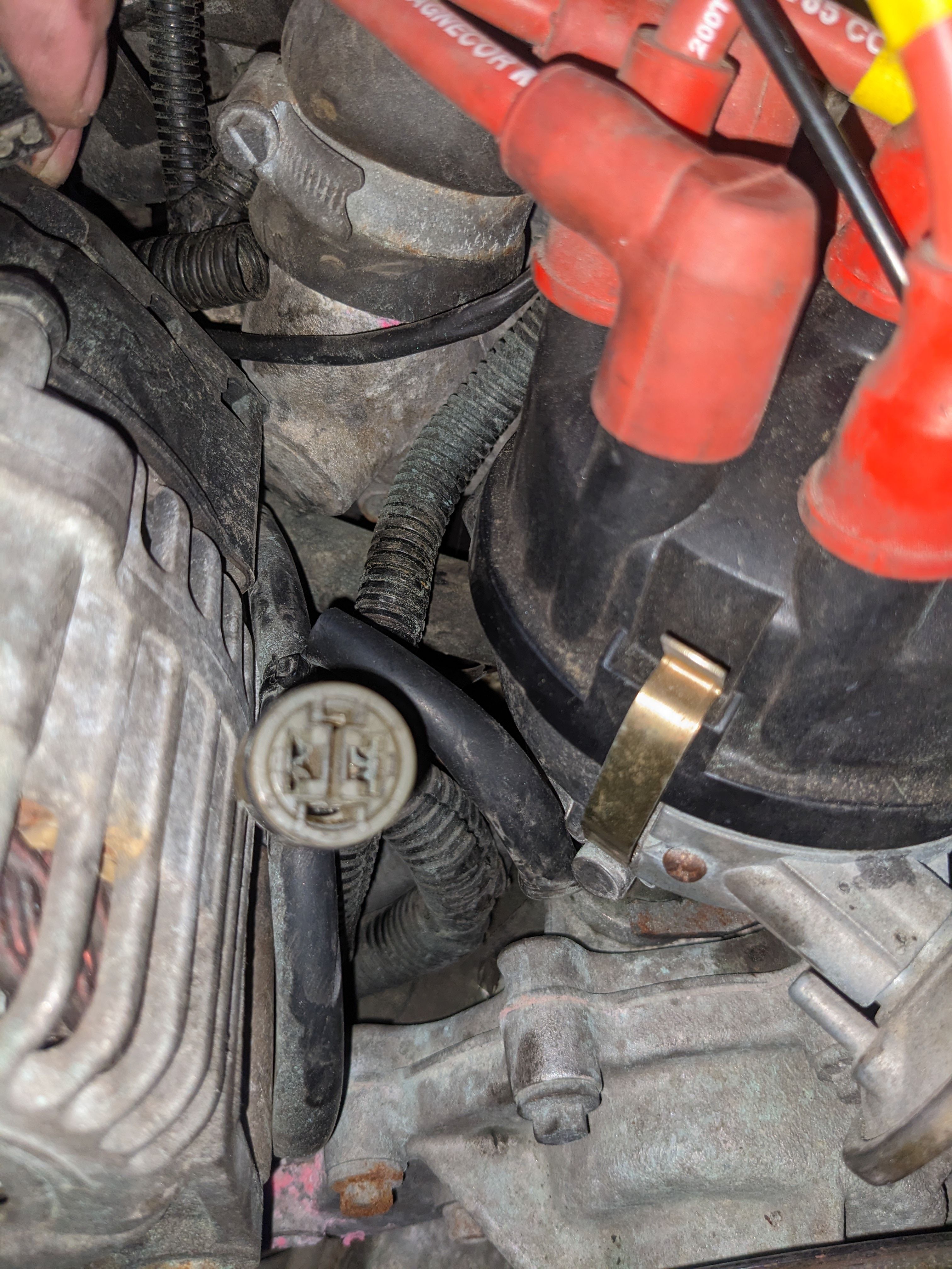 Im referring to that white round thing in the top pic to the left of the distributor clip