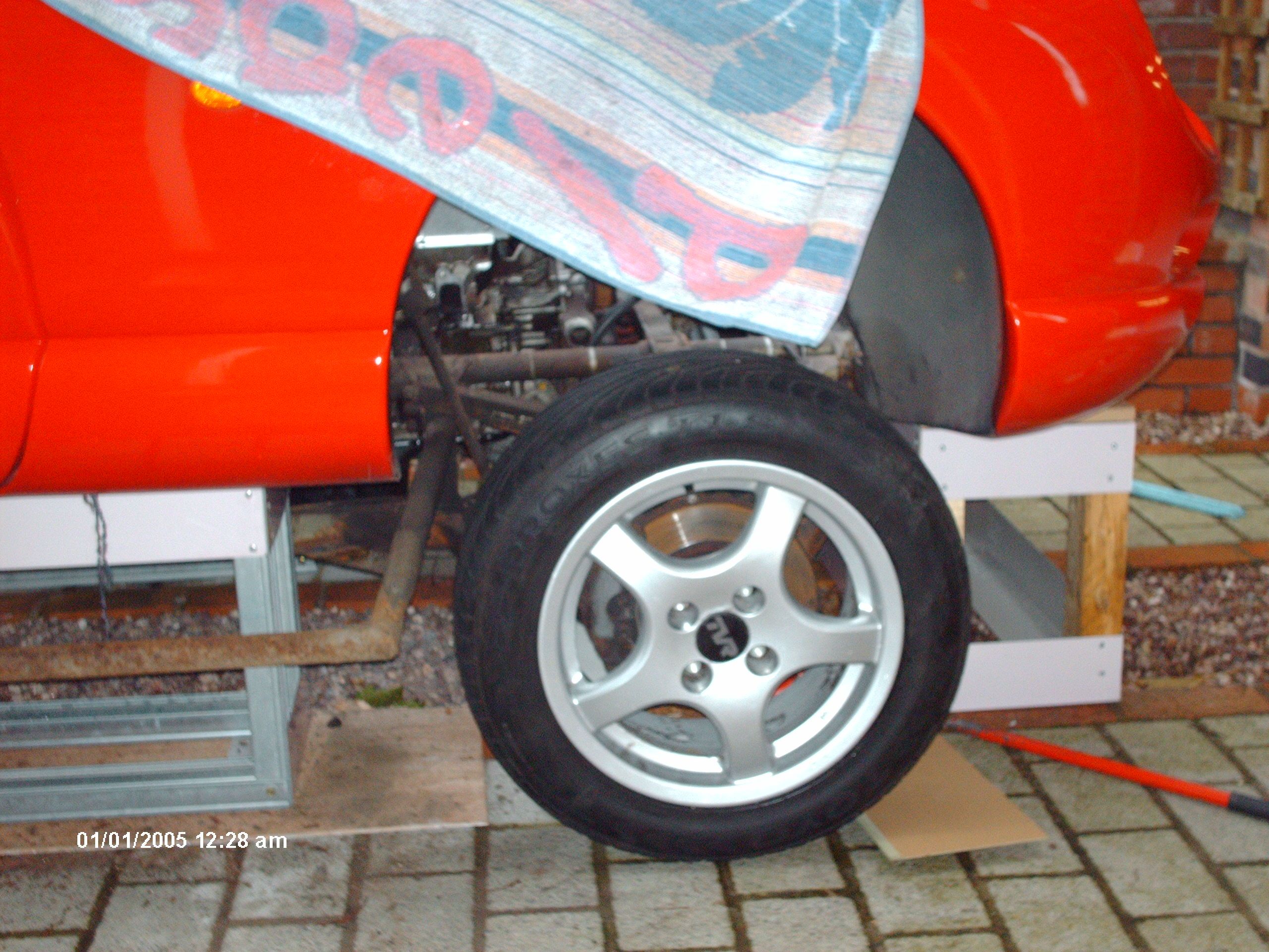 I rolled the chassis out and then lowered the body down onto some pre-made supports placed on both sides, and under the front and the boot.