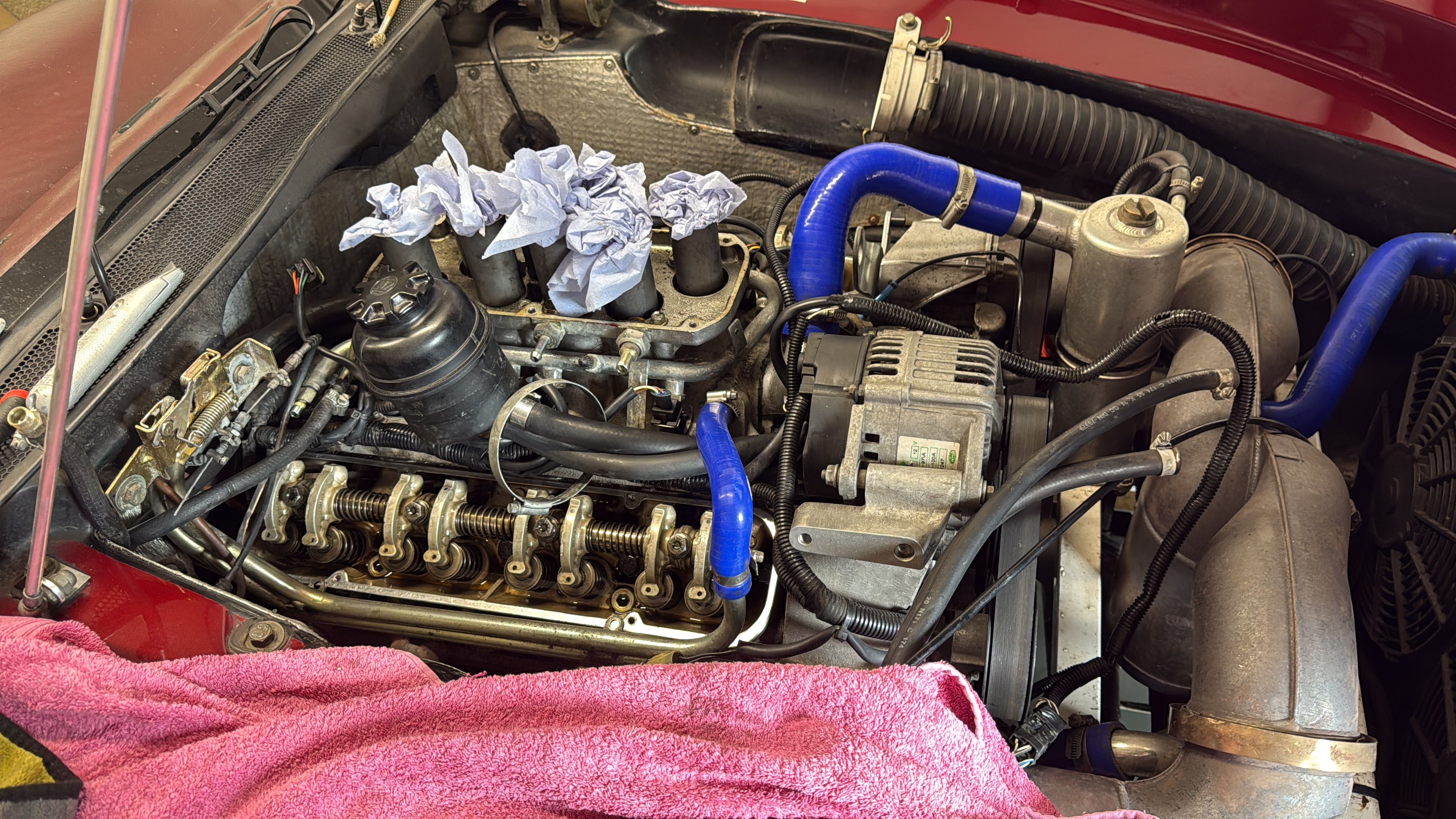 The V12 is a big old lump but it’s not to bad once you get through all the stuff on top. Just replaced all the fuel injection hoses and while there replaced the injection loom and had the cam covers powder coated. Rob