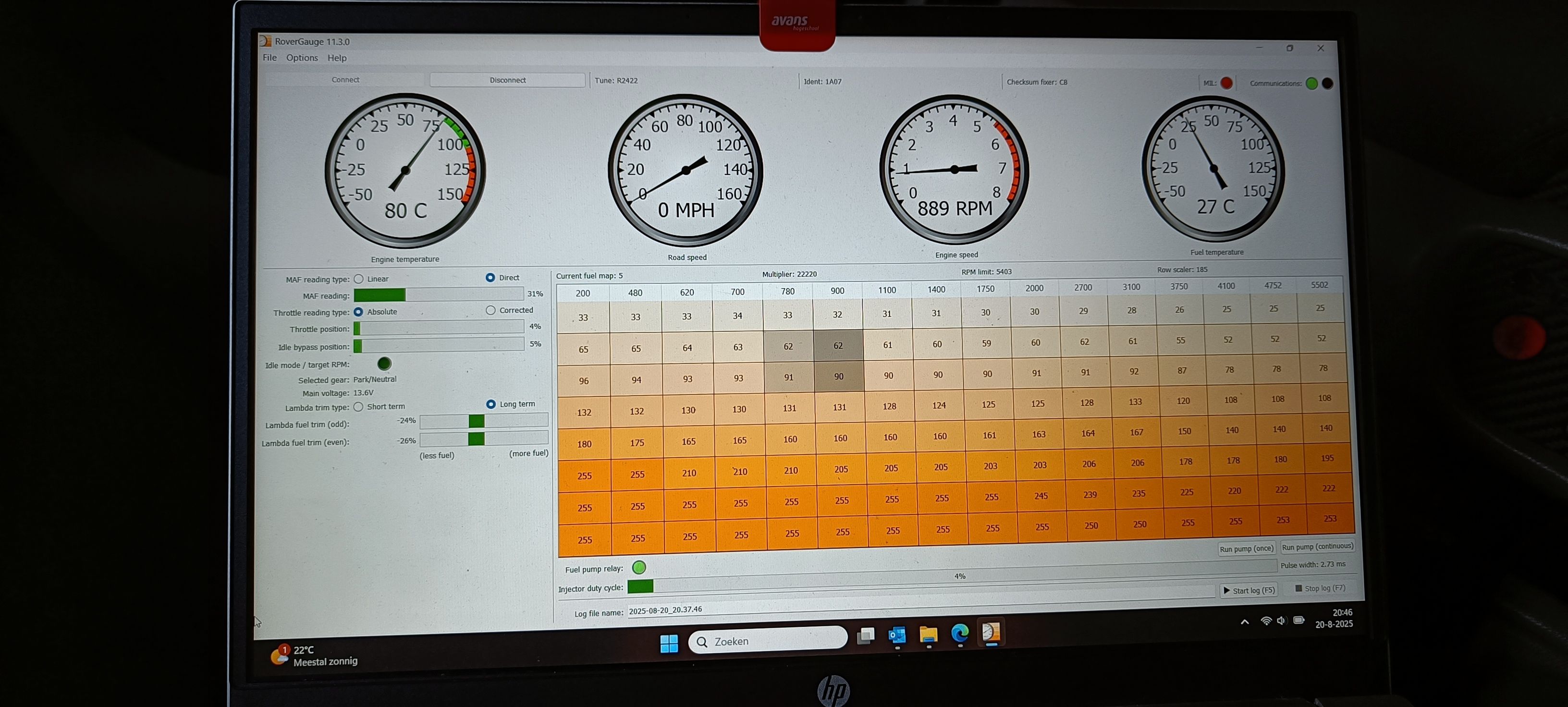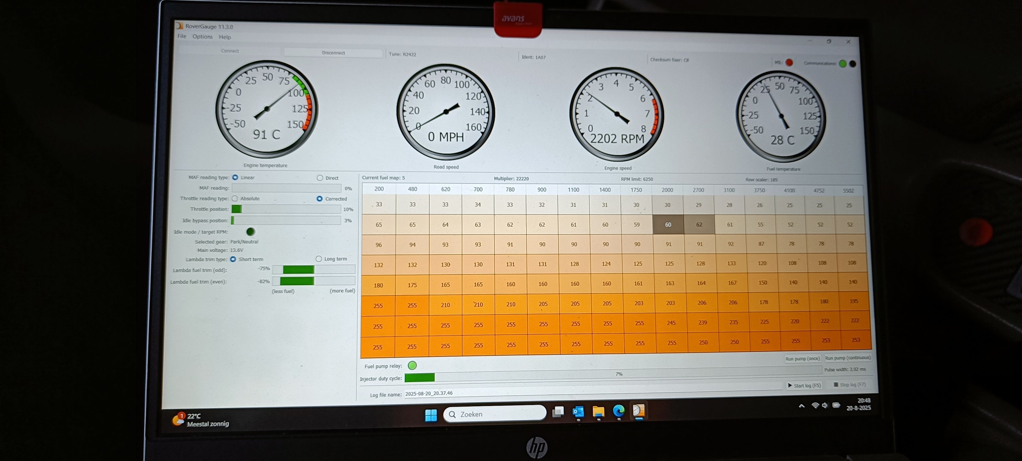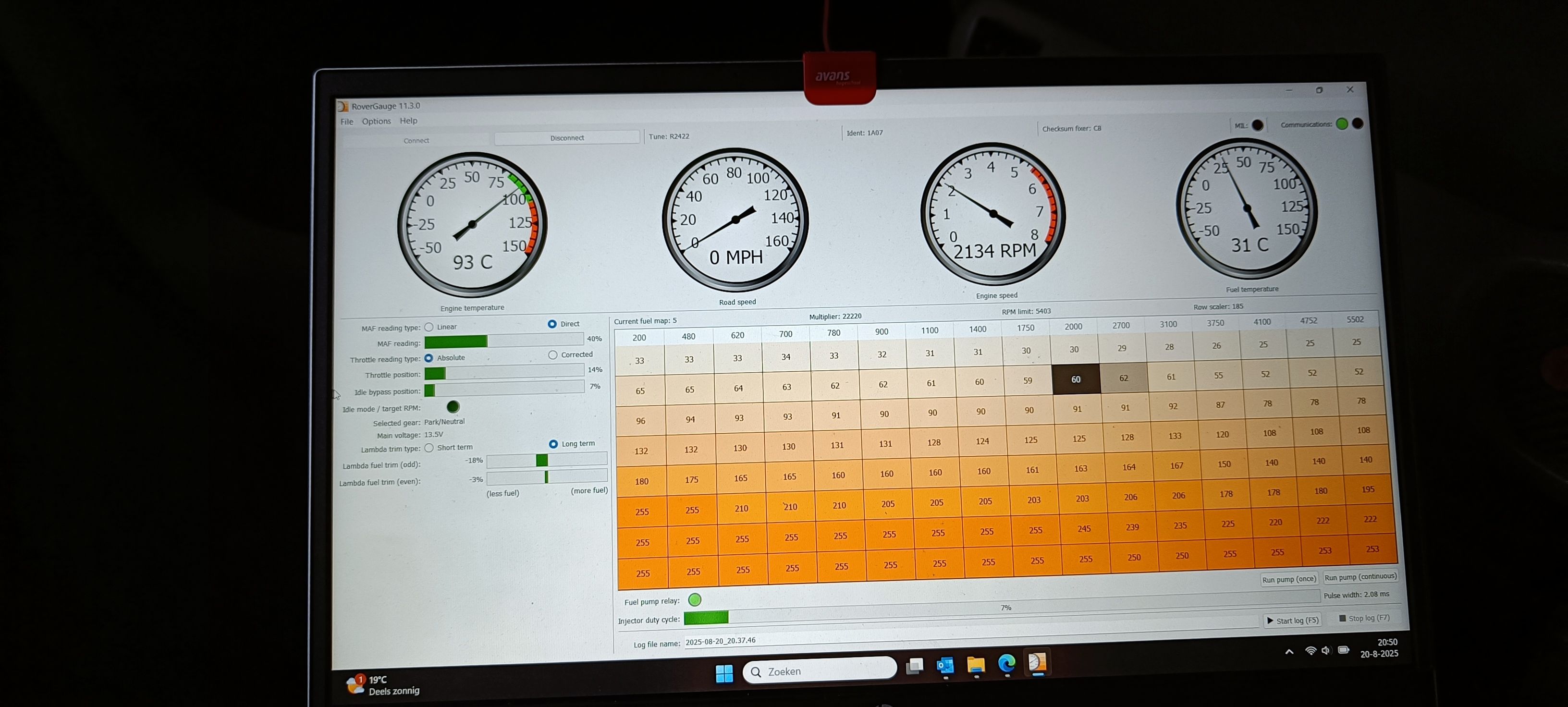 In rovergauge it's shown tune 2422 (pre cat) while mine should be at least 2967 (cat), this could be the cause of why I do not have a target idle and hopefully also has something to do with the rough idle & high emissons