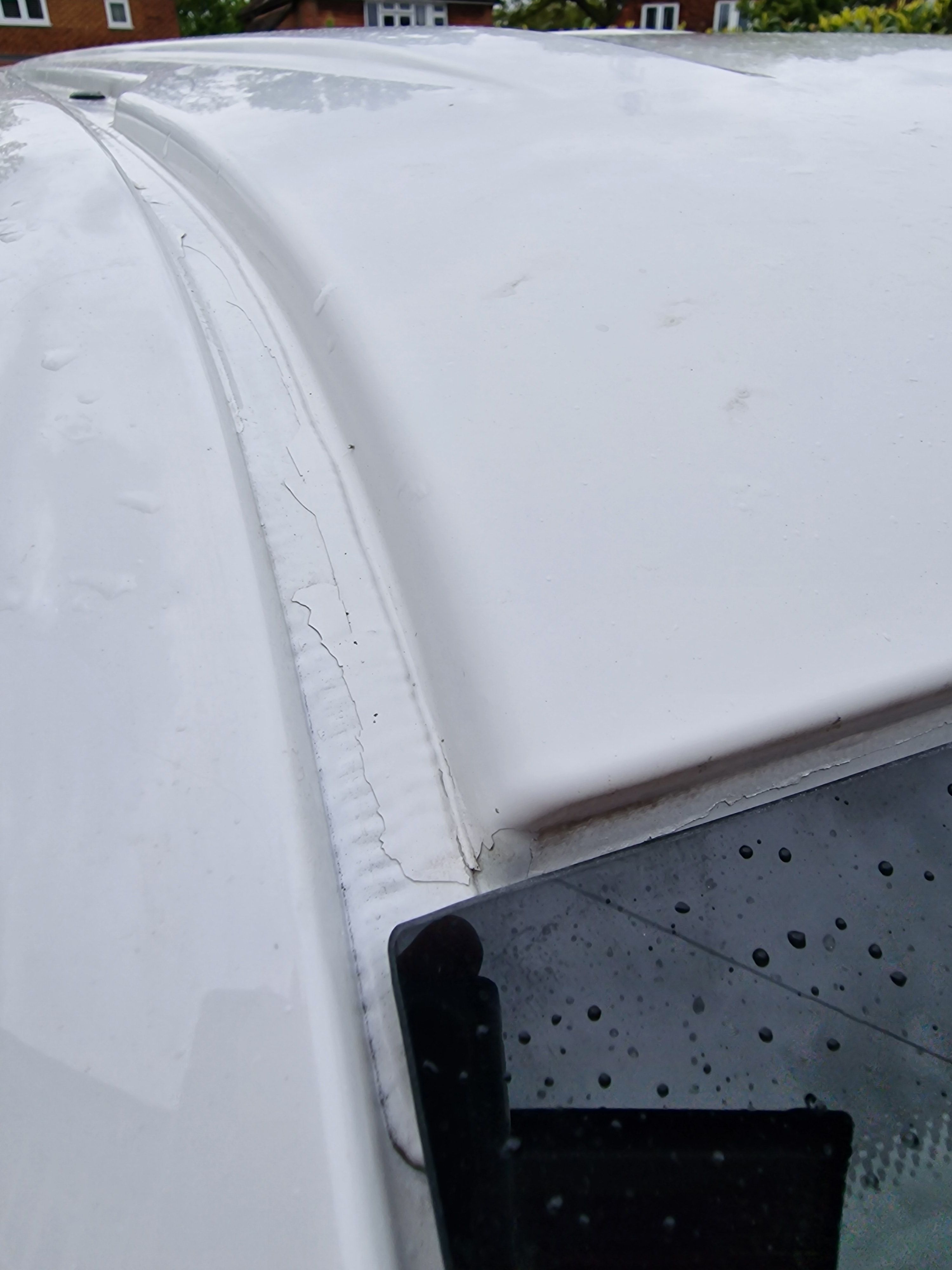 Above the passenger door there appears to be a weld mark that has been painted, unsure if this is a seam and thats where something has been resprayed at some point, in fact thinking about it the flaking paint on the roof suggests something was dropped on it and a new a pillar was welded in?