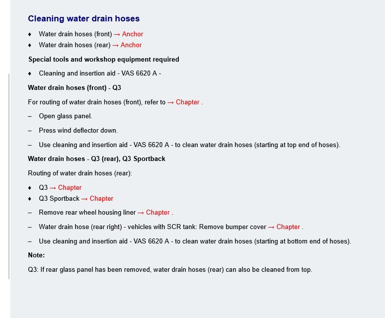 I had actually already removed the rear wheel arch liner but saw no sunroof drains. I'd very much appreciate it, as might other 2020 Q3 owners, if you could delve into your information source to find