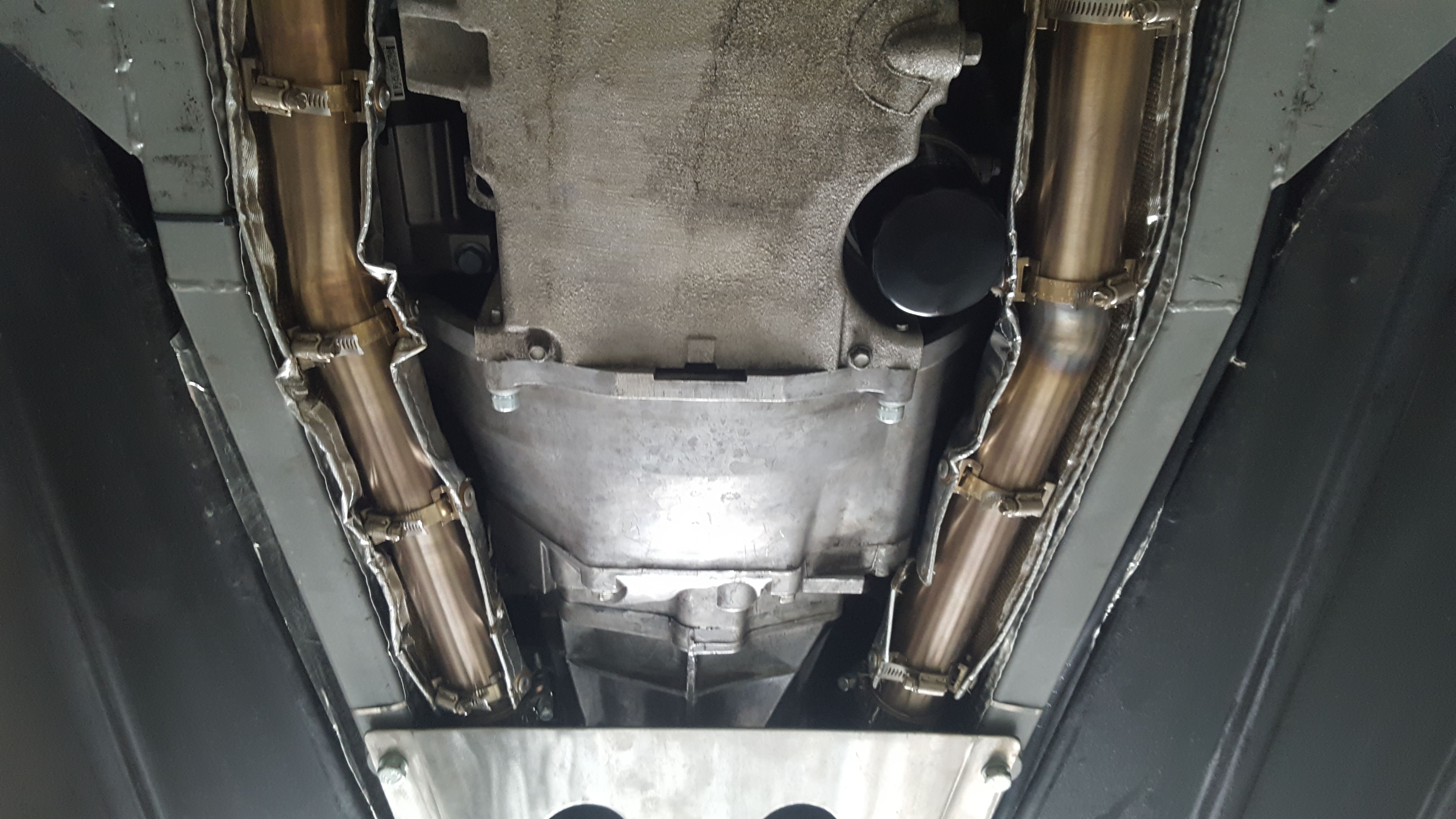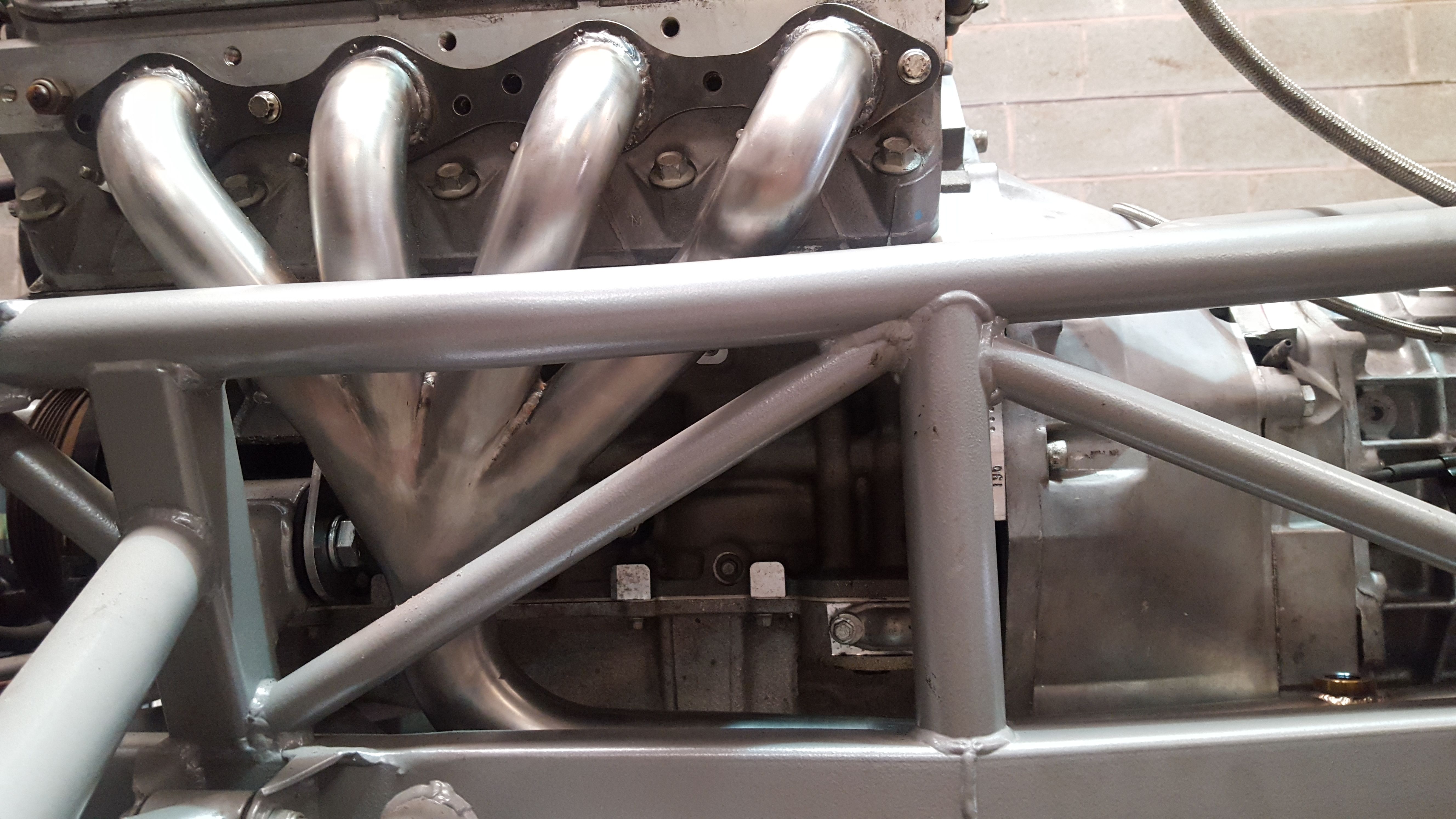 Yes standard chassis, the pictures below show a better engine view. The other pictures from the Evolution set-up show the block hugger manifolds, and the exhaust secondaries in heat shields and it has racing cats not shown. The chassis design, materials and engine bay heat management are explained on the Sportmotive website. How much difference, or what differences did you notice moving from std to evo chassis?