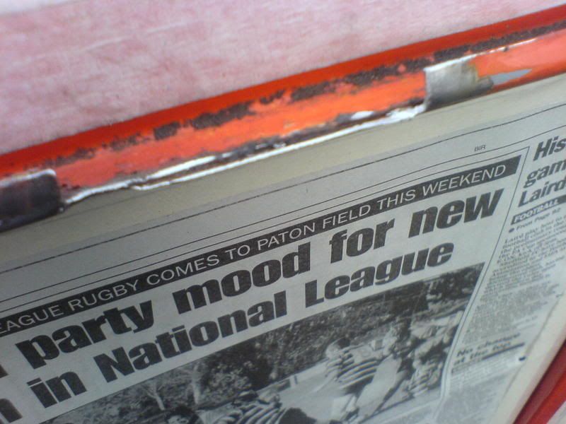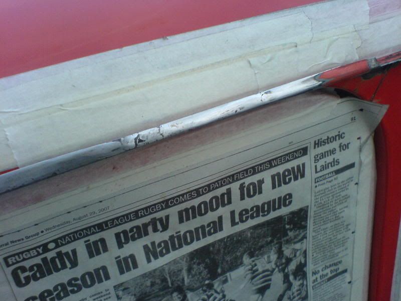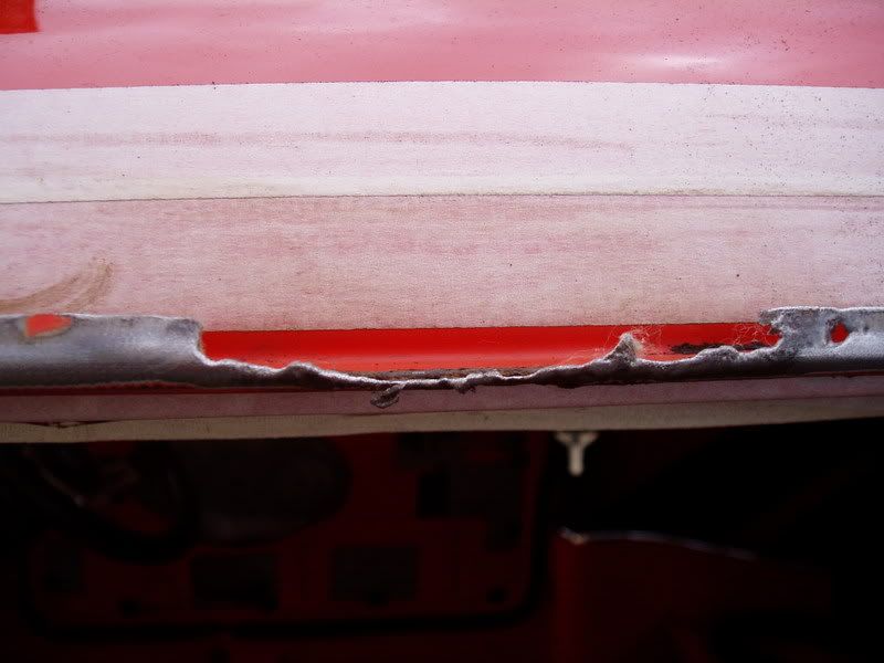 today has been great, my gaffa called me this morning sick so day off work (bonus). i called jeff who came down right away and full of energy. We removed the A panels to get to the rust behind them pictured below