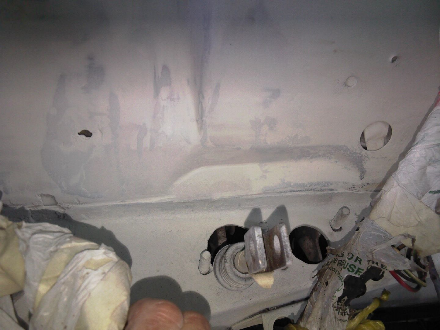 h of a job), linished all around to the clean metal, made some new panels to run straight down just past the hole that houses the air duct behind the dash so i had to cut the hole into the new panel i made (also a b