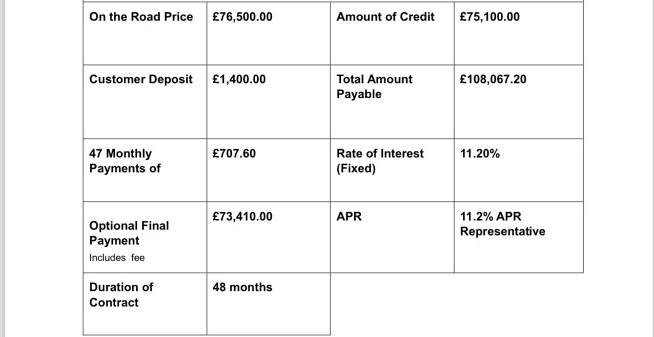 There is absolutely no way the car you mention exists at the price point you are talking about and something is wrong - it will be 8years old with over 75k on the clock and cannot possibly have a residual of 73k - it’s nonsense. Initially I thought that car’s residual will be nearer £23k; this is pretty close to what that car would look like in 4years time (8years old), note a dealer would be under that price.)