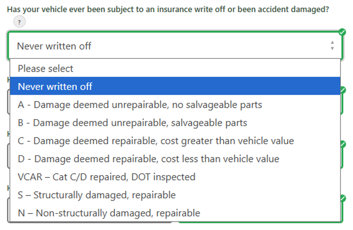 Heres the specific question and answer options, so the O/P would be selecting "Never Written Off".