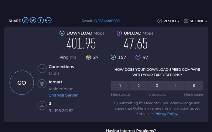 Then ran a speed test (bear in mind less than a week ago I was on 22/3)