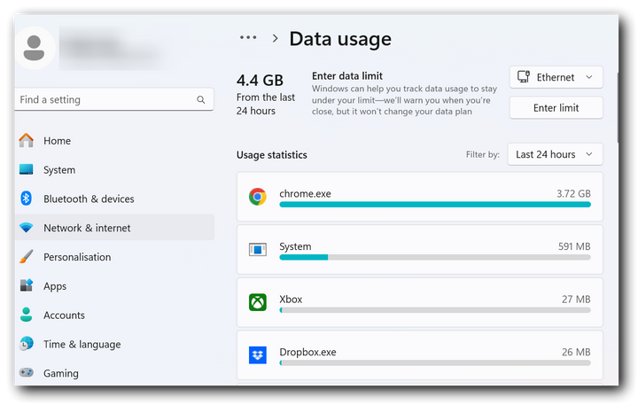 On your desktop PCs, you can use a tool like GlassWire to monitor network usage per application, which might help identify any unusual activity. For mobile devices, check their built-in data usage stats or use apps like My Data Manager.