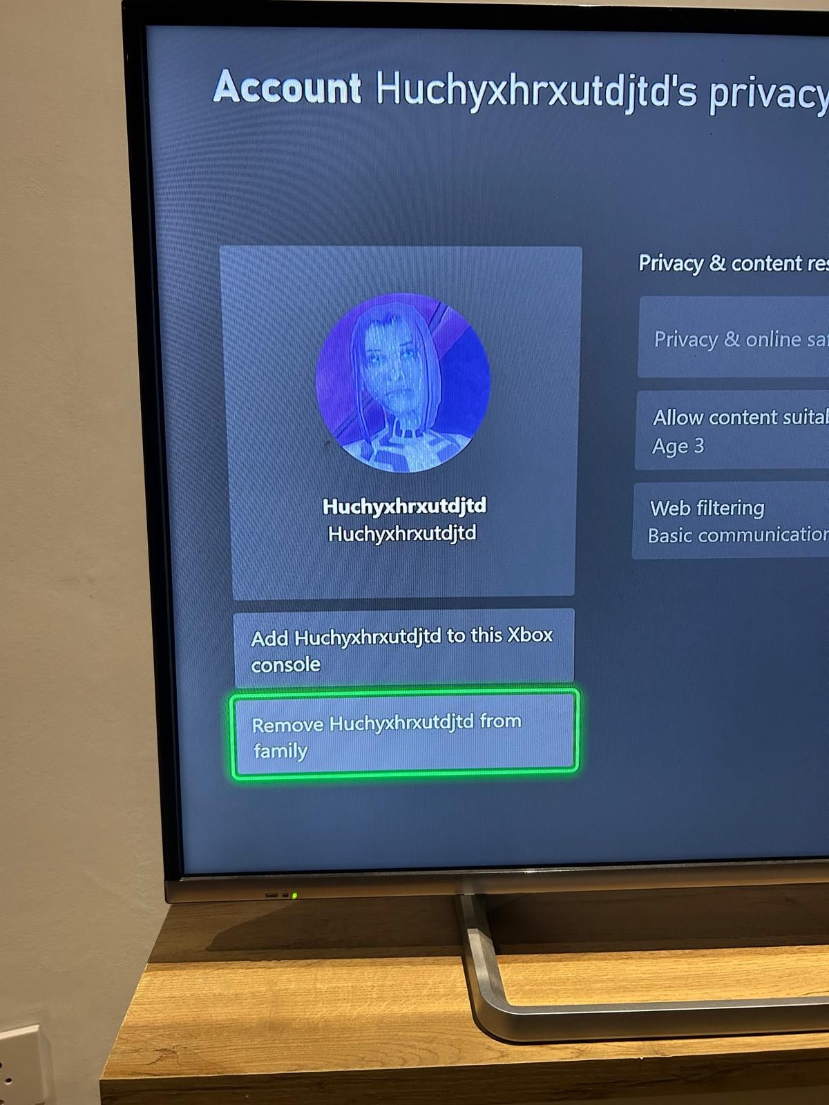 I looked at family settings to look into taking off parental control and noticed a profile name and picture. I asked my wife to seee if could remove