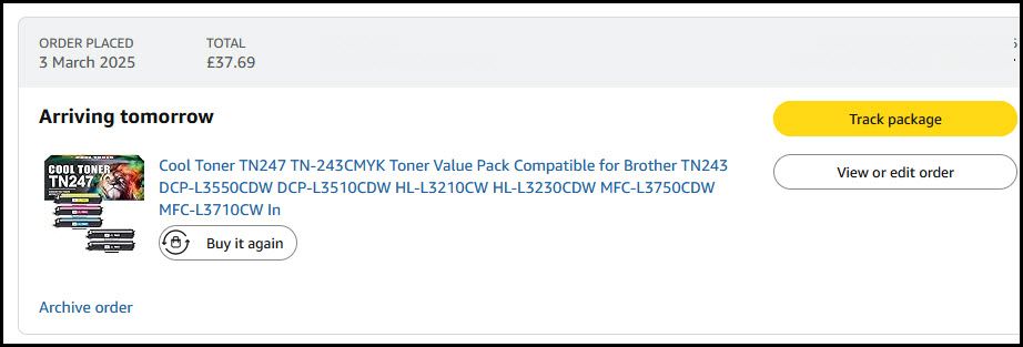 I'm on my 3rd set of Cool Toner carts. Two were for my previous printer (a Samsung, suffered a hardware failure, printer actually told me what but that was a non-repairable part and by then Samsung printers were no more) and the third is my present set in my Brother printer.https://www.amazon.co.uk/dp/B08ZSMGX6N