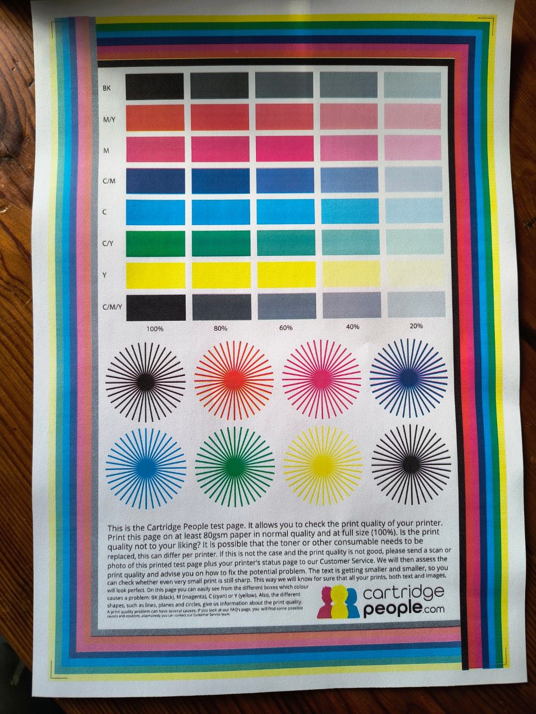 This is a scan of a colour test page from the Brother: