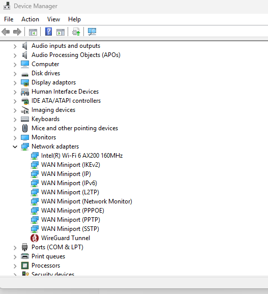 And then using Intel Driver and Support Assist, it makes no mention of the Bluetooth drivers, but says the network adapter is working fine.