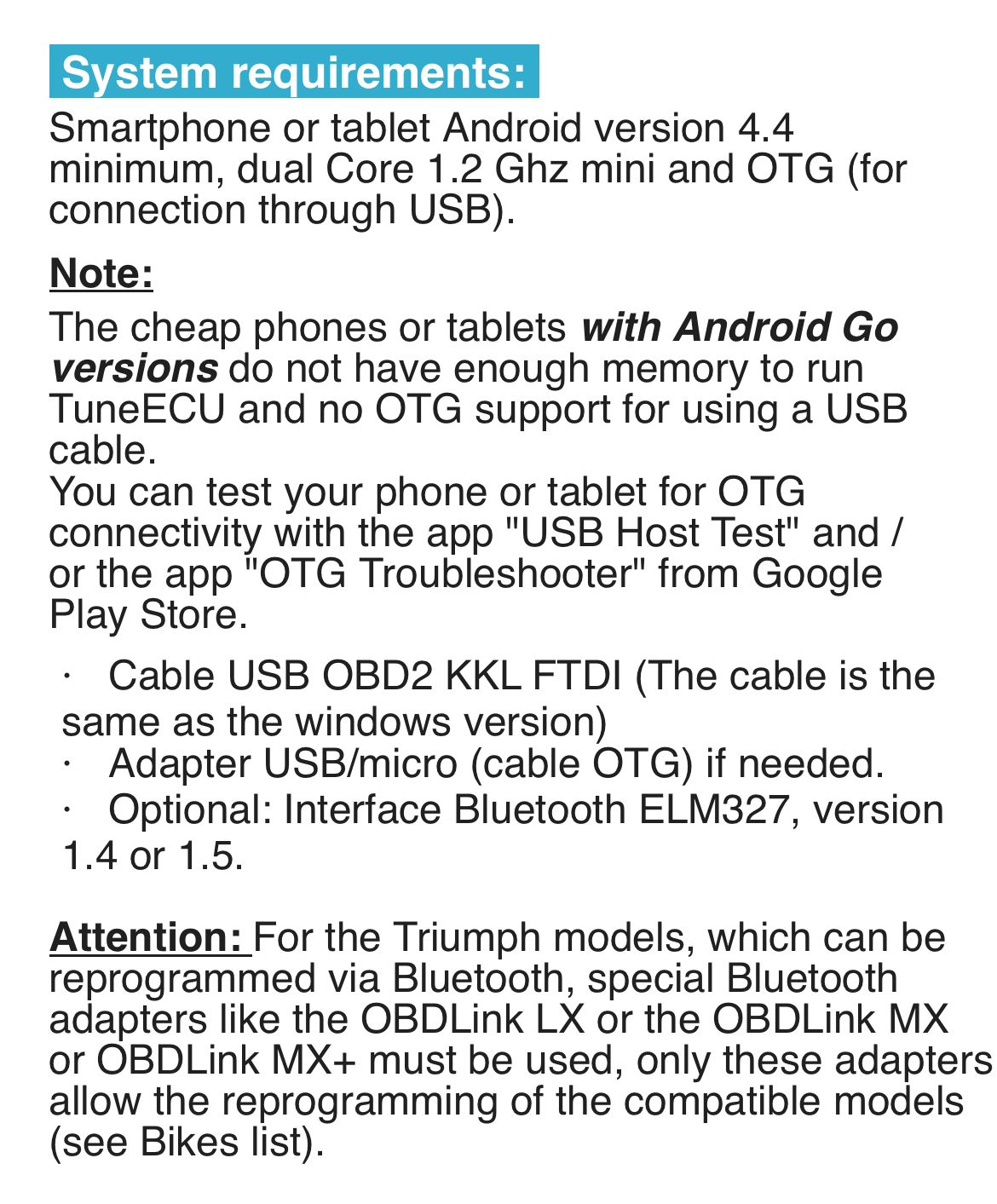 I recently purchased a Triumph motorbike and the diagnostic software is only available on Android. I’m very much into Apple and know very little about Android so would appreciate some advice on either a cheap phone or tablet to run it (preferably a phone). It will only be used for this purpose.