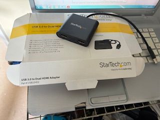 I have bought a USB 3.0 to Dual HDMI Adapter from StarTech.com in the hope this will help to connect all three