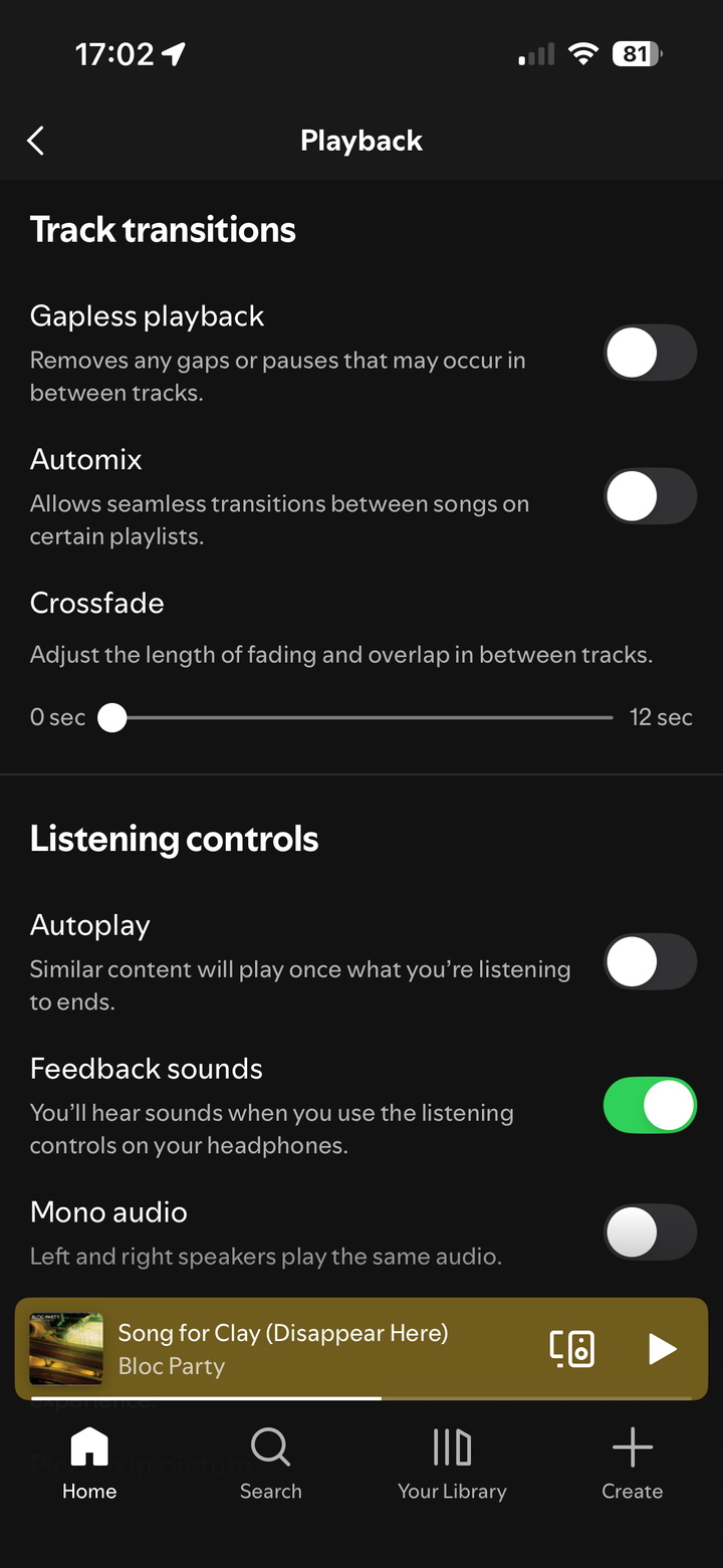 This week Spotify has begun fading one song into the next. It never used to and I haven’t touched the settings but despite ensuring all the playback options are set to avoid this, it still merges songs together. I normally listen through CarPlay exclusively but i tried a few songs through my phone and it’s also doing it. Can anyone help please?