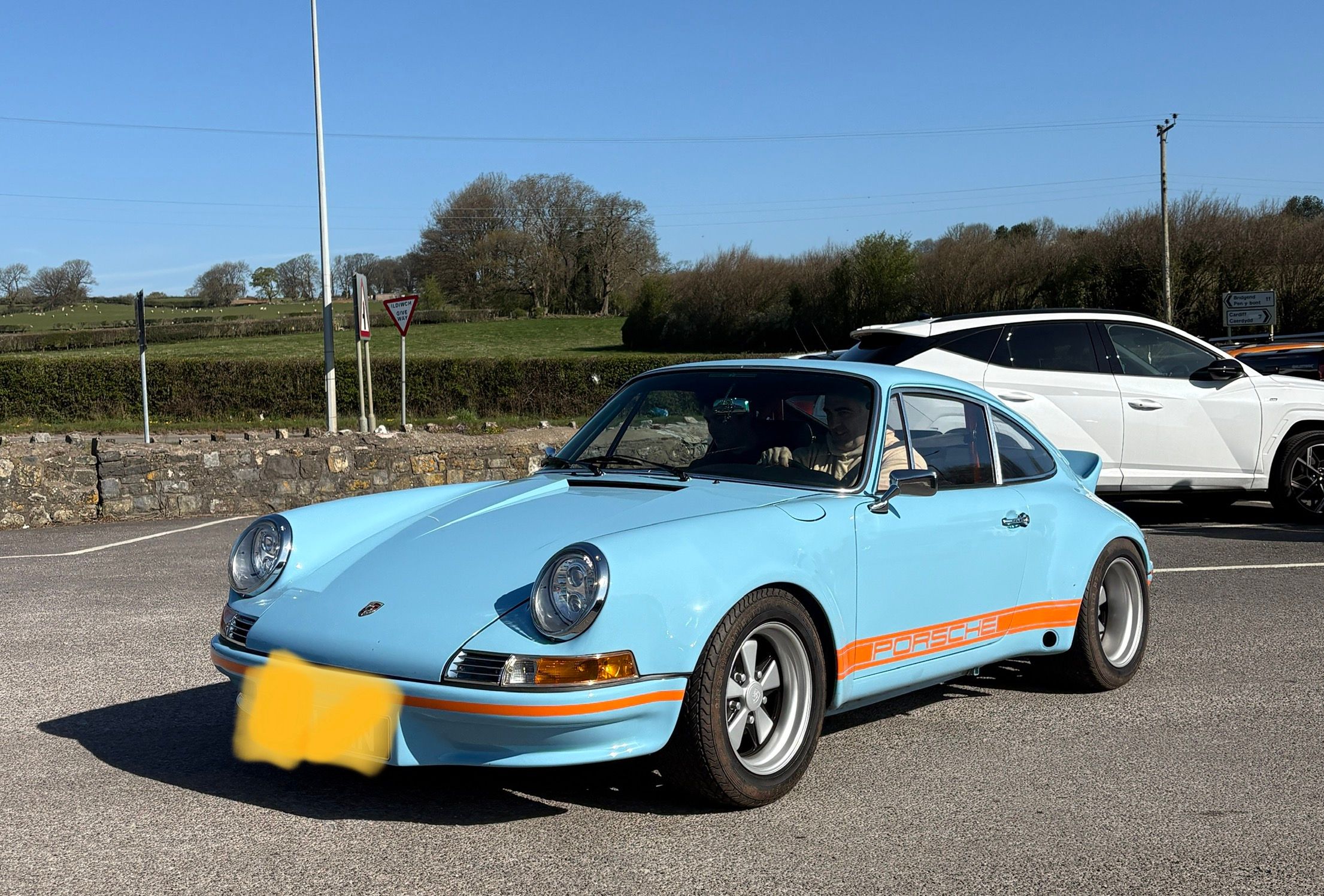 Grey 997conv M4 Pencoed, Black G Wagon coming into Nottage, blue 997 C4S on driveway and below parked up in same village.