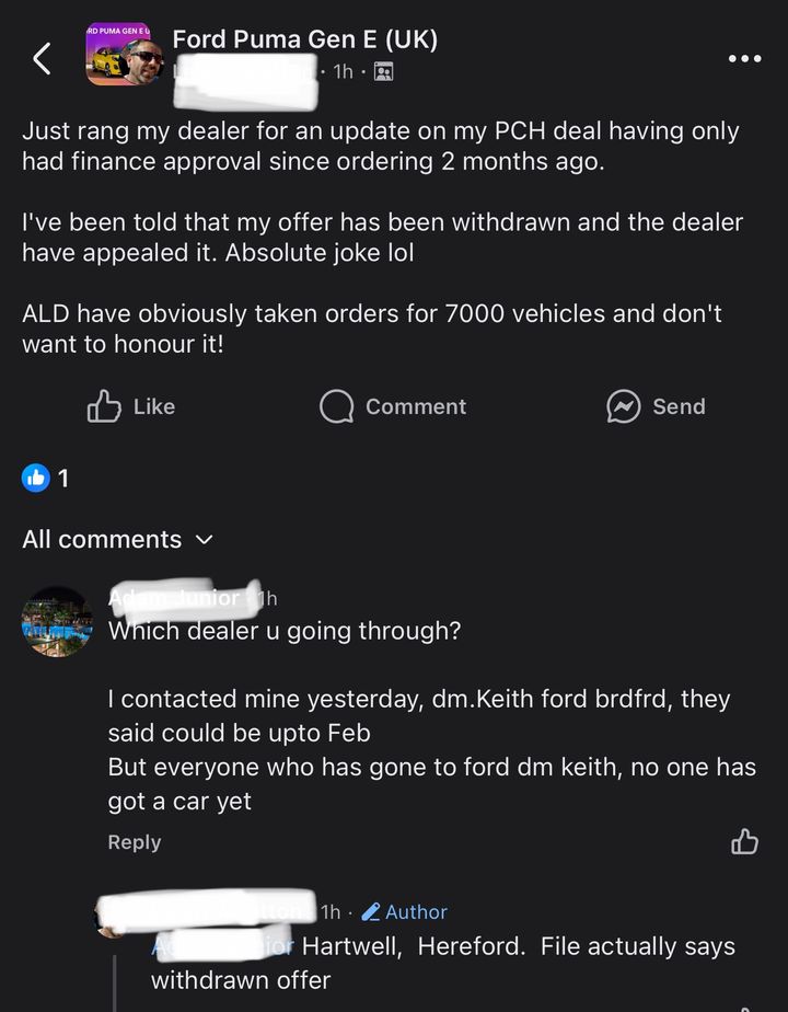 Plenty off people on the puma fb group taking delivery, although most are not on this deal, paying more or have bought outright, I guess us bargain hunters are way down the list for a car