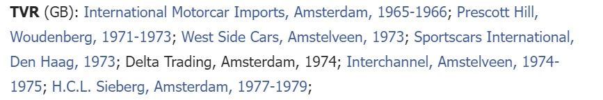 so I looked at TVR and saw that they had 7 TVR dealers before 1980! I never knew that.
