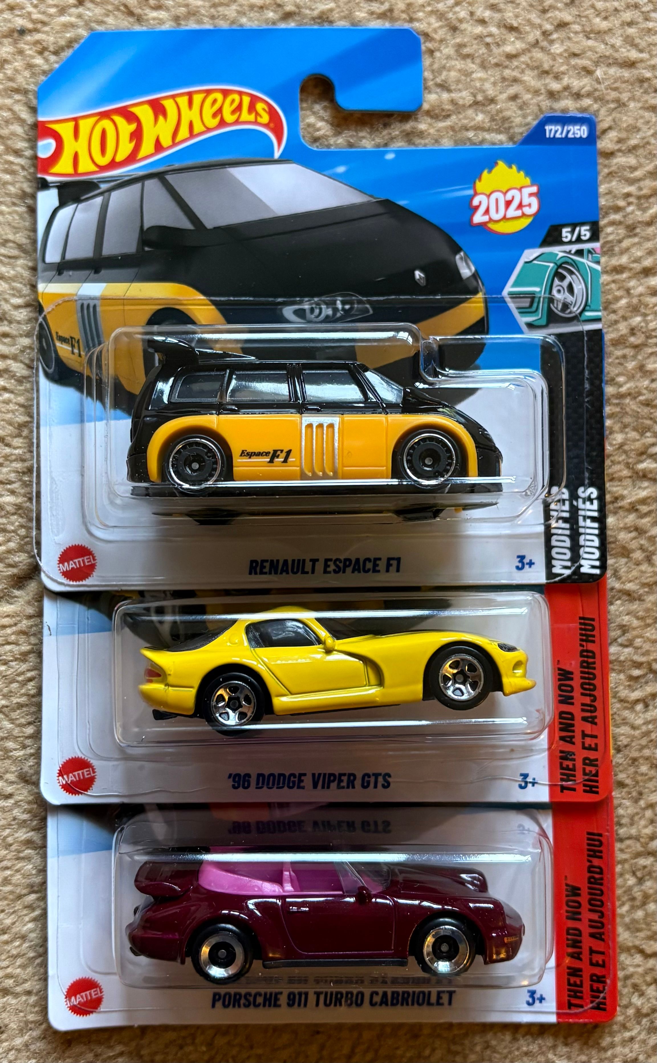 Three for two in The Entertainer. Recolour on the Espace and Viper, and I like the Porsche. Still looking for the XJ-C