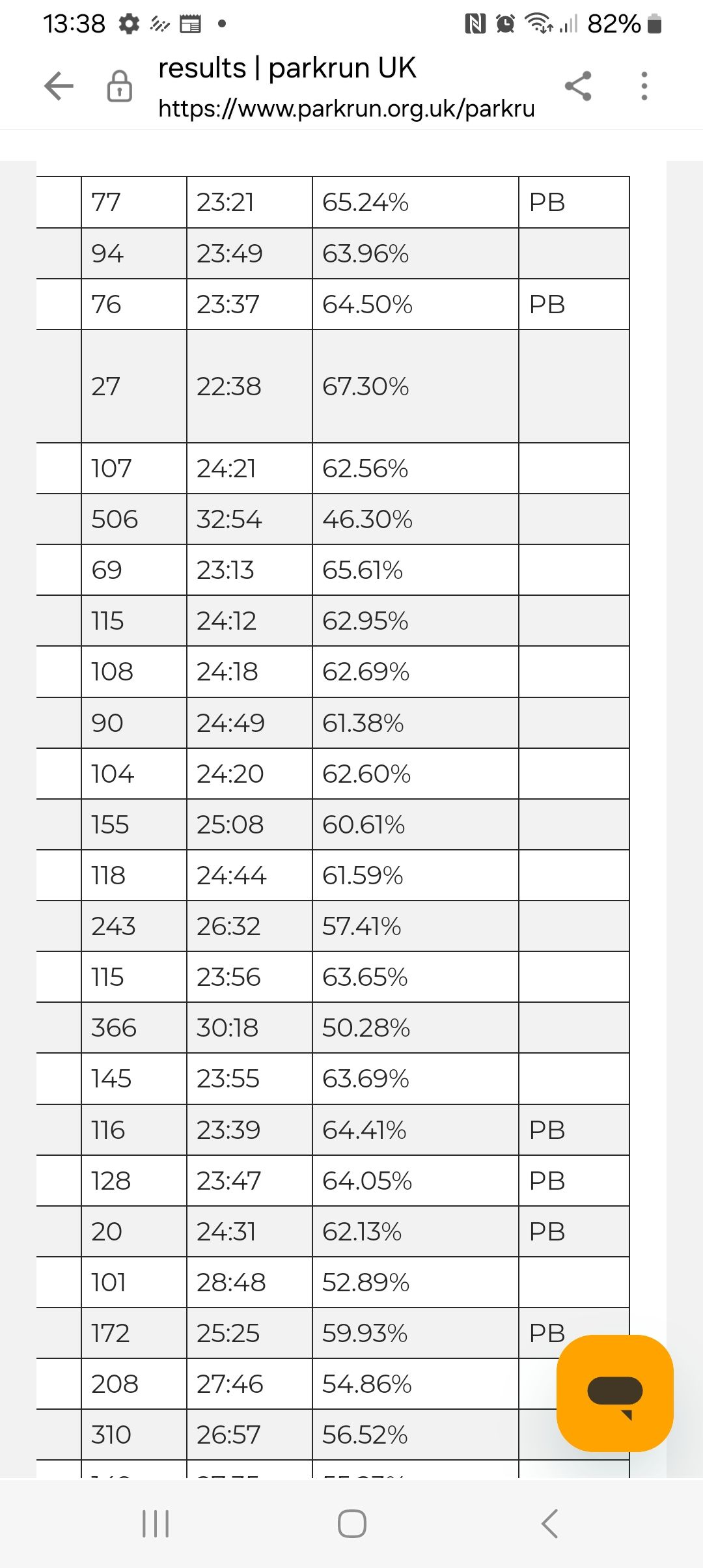 Far too busy chatting to Glovermart, so started a bit far back and it took all of the first lap to catch him up. The guy did a great job gently encouraging a few kids and lambasting the adults to go faster. Just managed to get in front on the final lap and pleased to find he was actually going a bit quick so ended up on 24.31. Nowhere near my PB but a good return to trying to go faster as recently I have been focusing on distance.