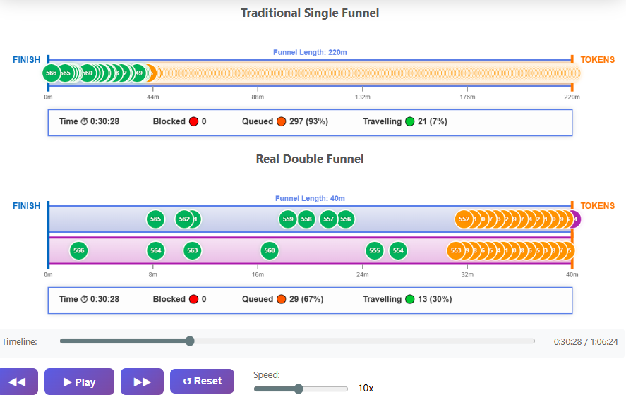 As part of the Real Double Funnel project we've created the Funnel Simulator, probably not of direct use for most of you but fascinating to watch what happens when big numbers go through a finish funnel. (Edit - it needs a proper grown up machine to run on - phones don't have enough memory)