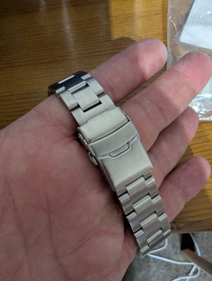 Those of you who remember my £46.95 Addiesdive orange dial watch I purchased earlier in the month might, or probably won't, remember that I wasn't impressed with the cheap buckle on the strap, well I bought a milled clasp as you all seem to like them, and fitted it today.....
