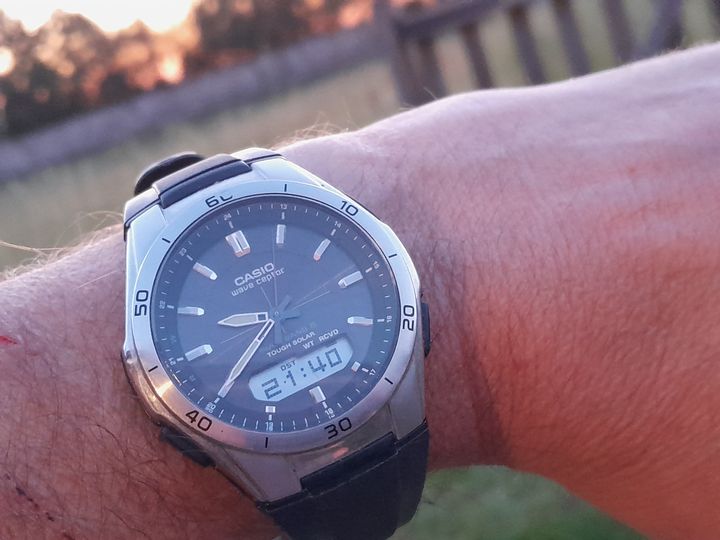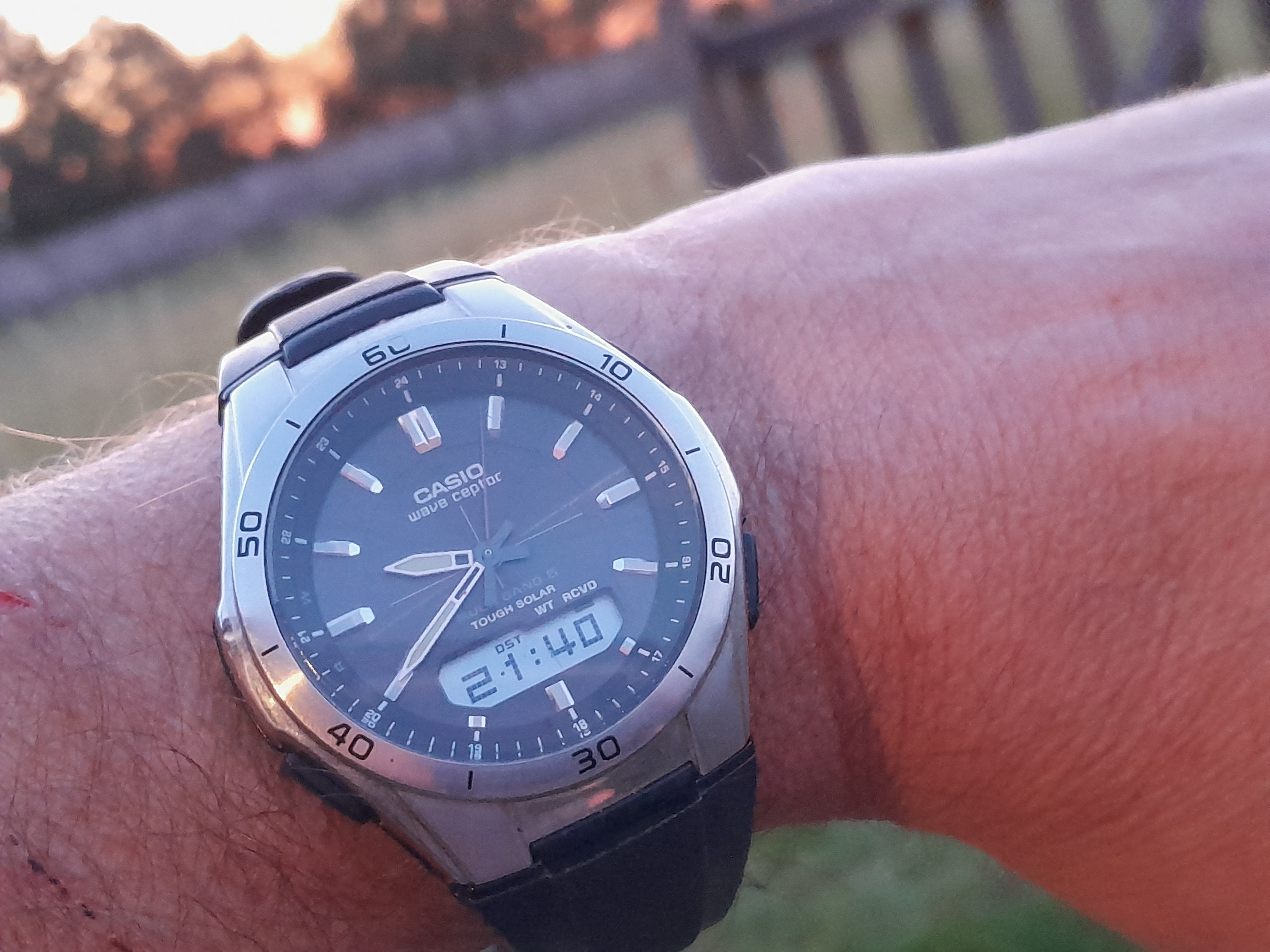 The watch below is battered but on a new proprietary strap. The case is wrecked, the crystal scratched to buggery. It is a solar, radio controlled watch and is never more than 2 seconds out of correct time. Never have to set the date on it. The watch is indestructible and my first expensive watch I bought at under half thread budget. It along side this thread started me on my journey.