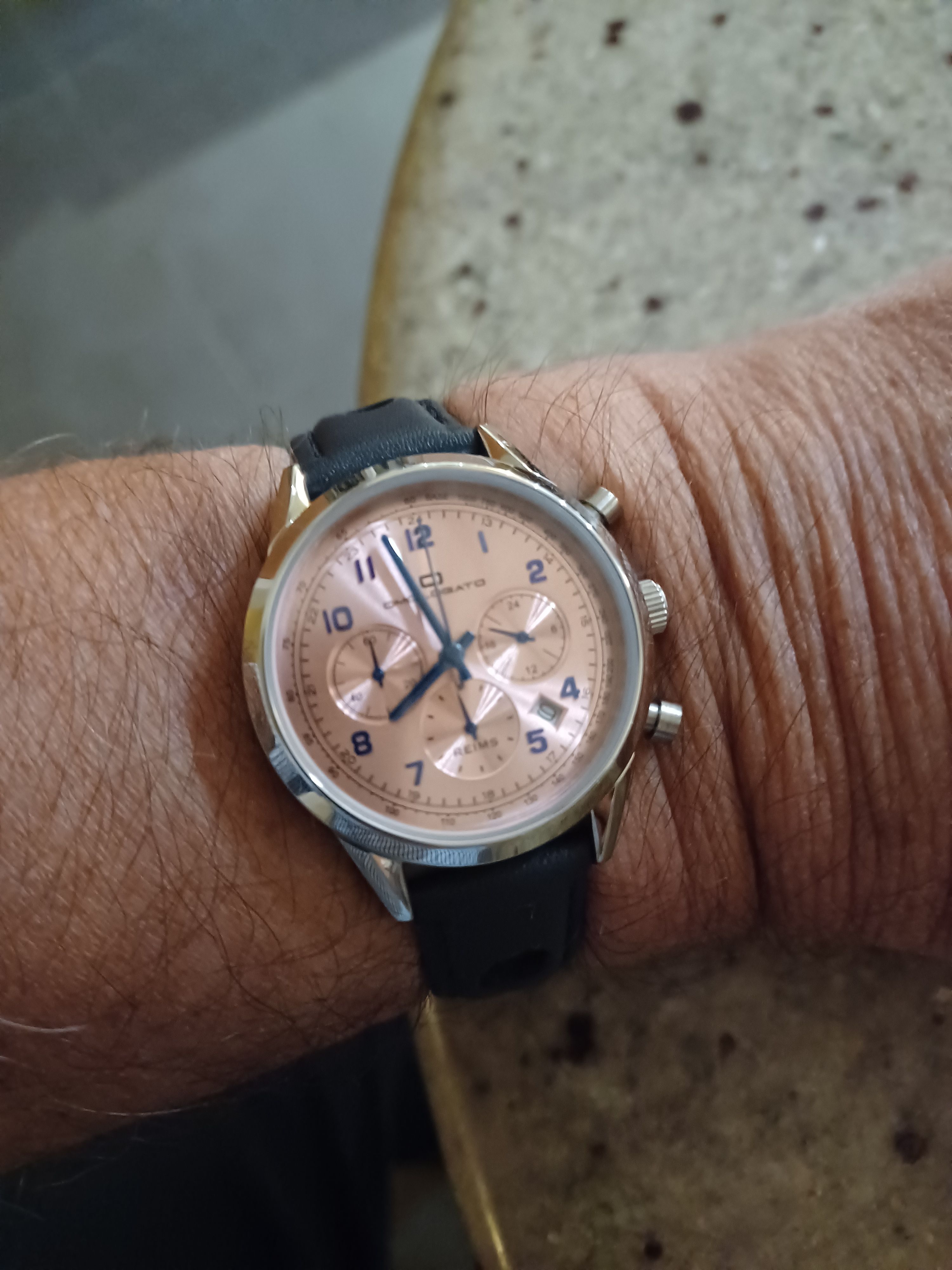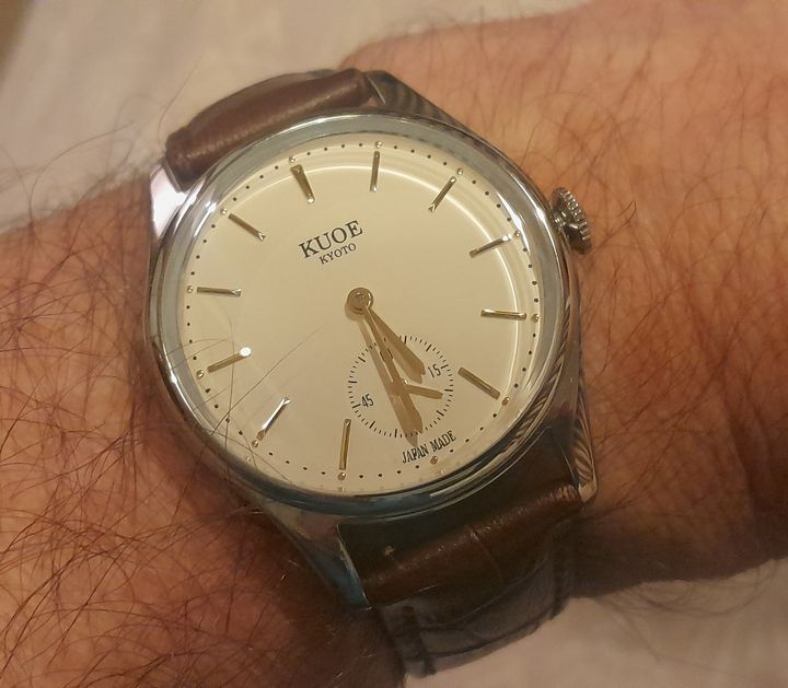 Arrived today just grabbed a quick piccie, hopefully get some better pictures tomorrow in daylight. Probably not a watch for many here as it doesn't fit the usual dive or field or tool watch vibe. It really matches with where I am at the moment with watches. Hugely retro and dressy.