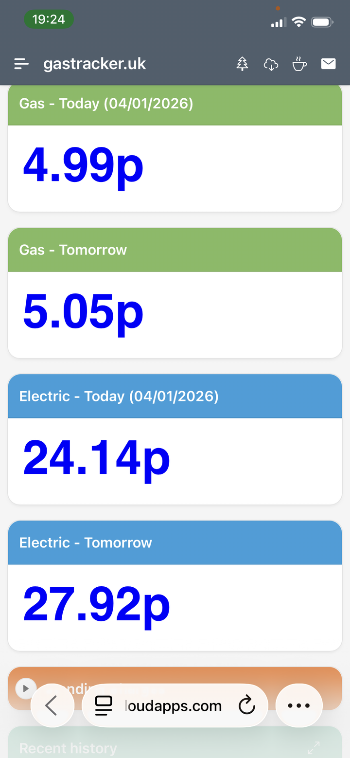 It’s 1pm on 1st Jan, right now the grid price is 3.87p/kWh. No wonder they’re happy to sell it to you for 7p.Whole house/Ev/Phev(3 pin plug, car schedule starts at midnight) averaged 13.xp Kwh last year, without trying too hard.