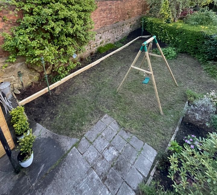 I reckon it’ll only take 1 weekend of ‘work’ with some new soil to level out and get seeded. then just need to wait on the grass growing.