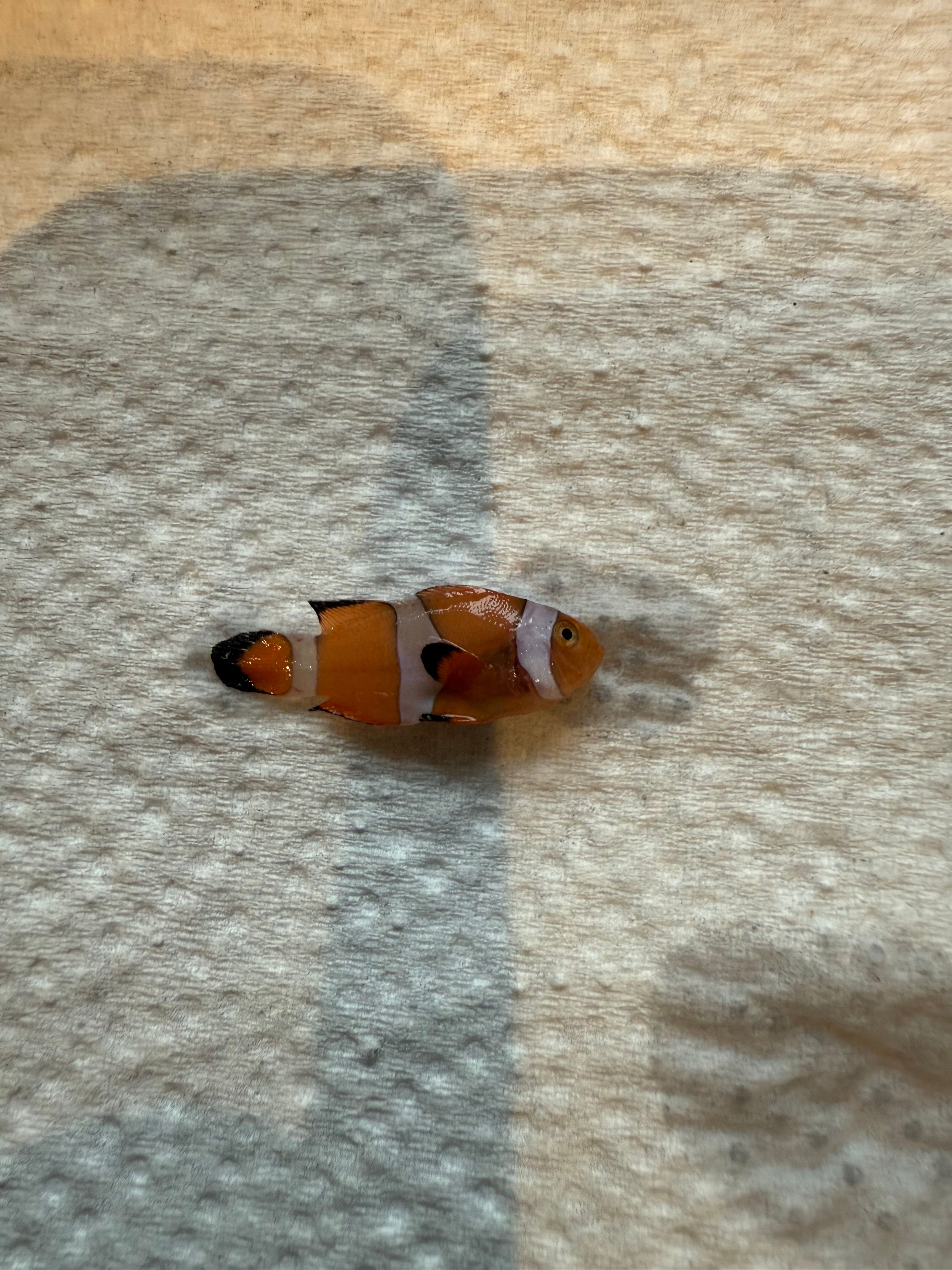 Oh no, sorry to hear that, I'm amazed you can even get clowns that size in honesty.Hermit crab found, he was just wandering around like nothing had happened this morning so good news.