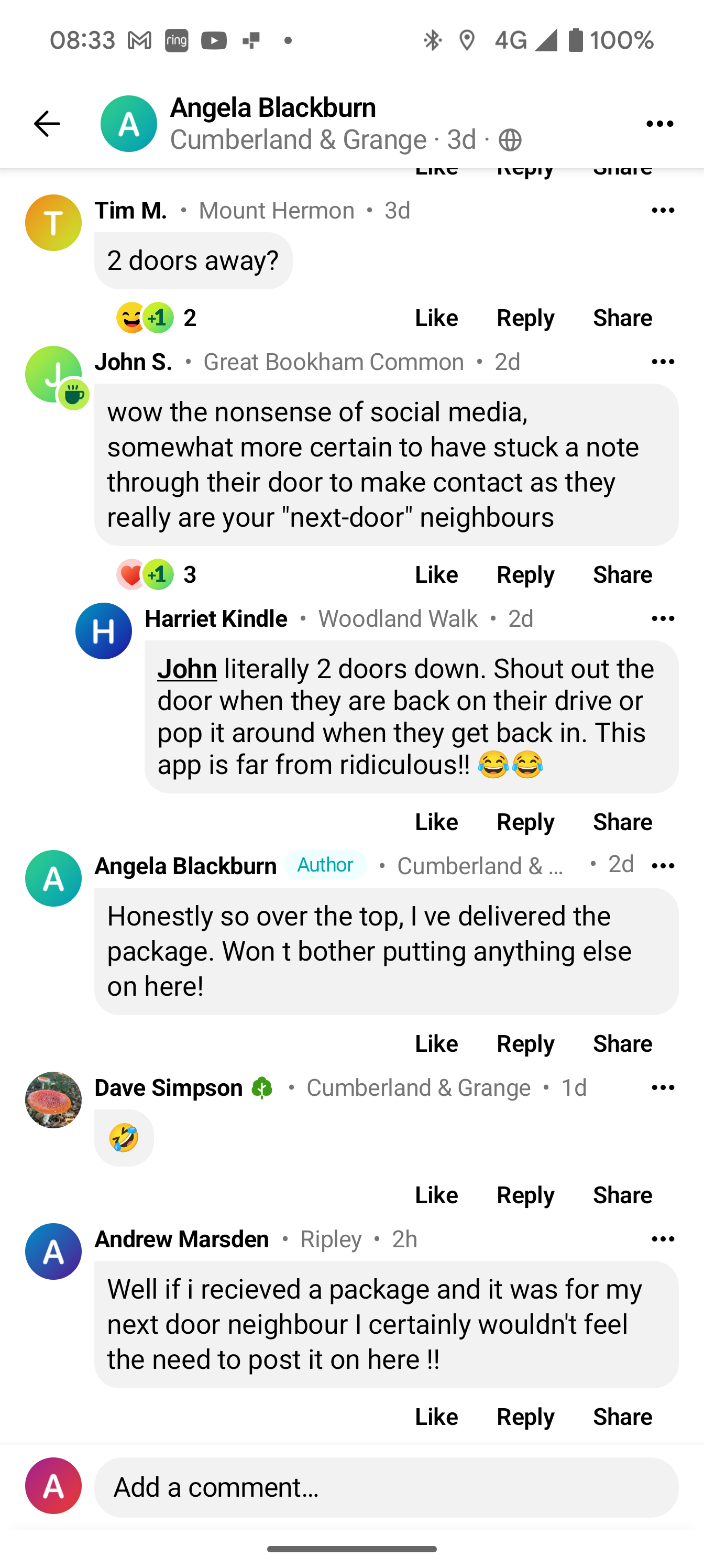 I’ve invented a whole family of fake FB accounts to get around this, none of them have twigged yet why there are so many piss takers with the same surname. I’m going to start posting as the dog next to see if the penny drops.