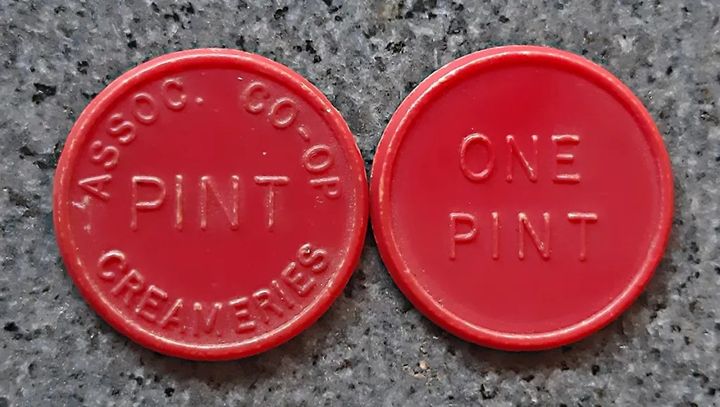 You bought the tokens from the local Co-op, and put them out with your empties, to pay your Co-op Milkman. It was supposedly a bit safer than leaving the cash for your daily pint out for him. Because the tokens were plastic, they were lighter for the Milkman to carry about, and were a safer option. When the prices of a pint of milk went up, the Co-op would change the colour of the tokens, so you could identify which token had been paid for by what amount. If you had an "old" colour token, you'd leave the extra penny, halfpenny or whatever out, to make up the token to the price