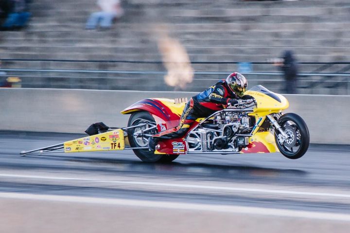 I've seen the French nutter who runs a rocket bike at Santa Pod. Once it is 'fired' then there is no way to stop it until the fuel runs out, he just has to cling on until then.But even more scary was the dragster motor cycle that was parked next to it.