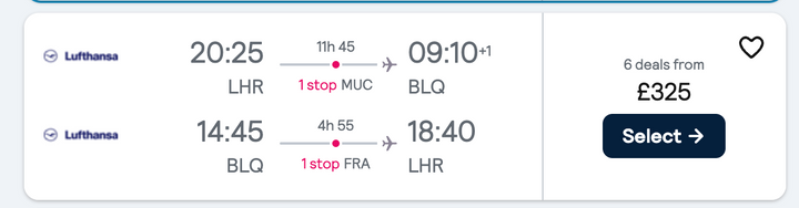 Starts looking at cheap Skyscanner flights to Bologna Airport...