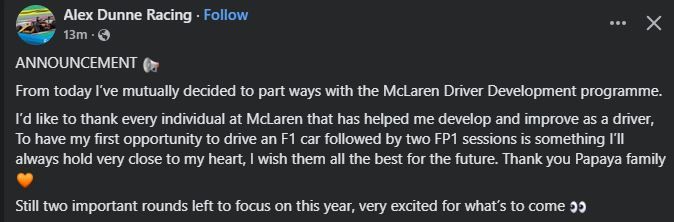A blow to McLaren but looks too good to be on the sideslides waiting. Hopefully he doesn't end up in an Alpine or Red Bull toxic situation.