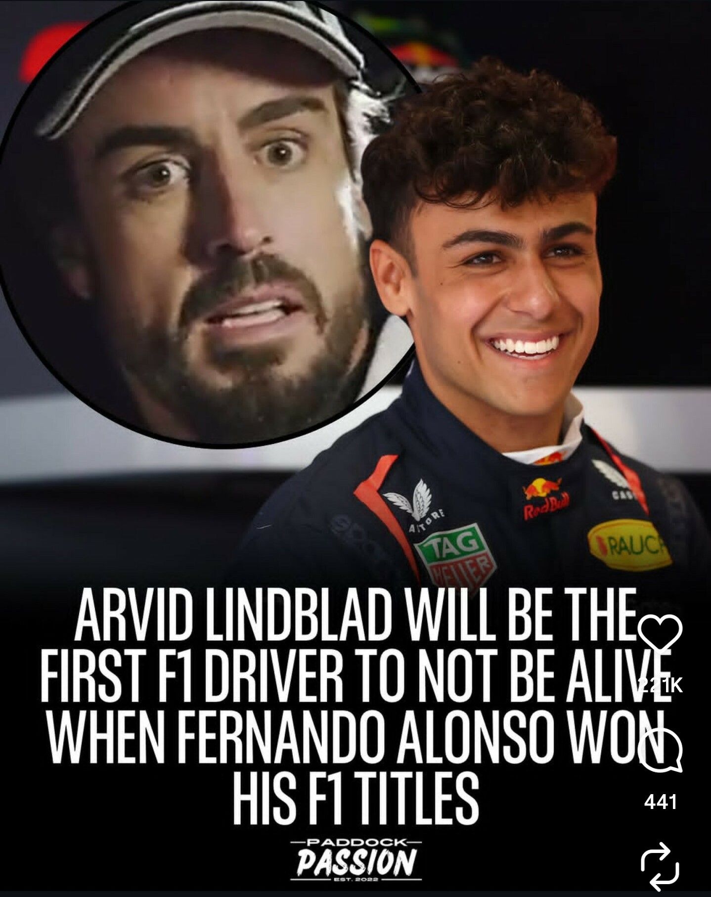 Not to be born when Fernando won his first two F1 titles.But in reference to the meme... He'd have to 'unalive' by the end of 2026 for it to be true if Alonso won another title