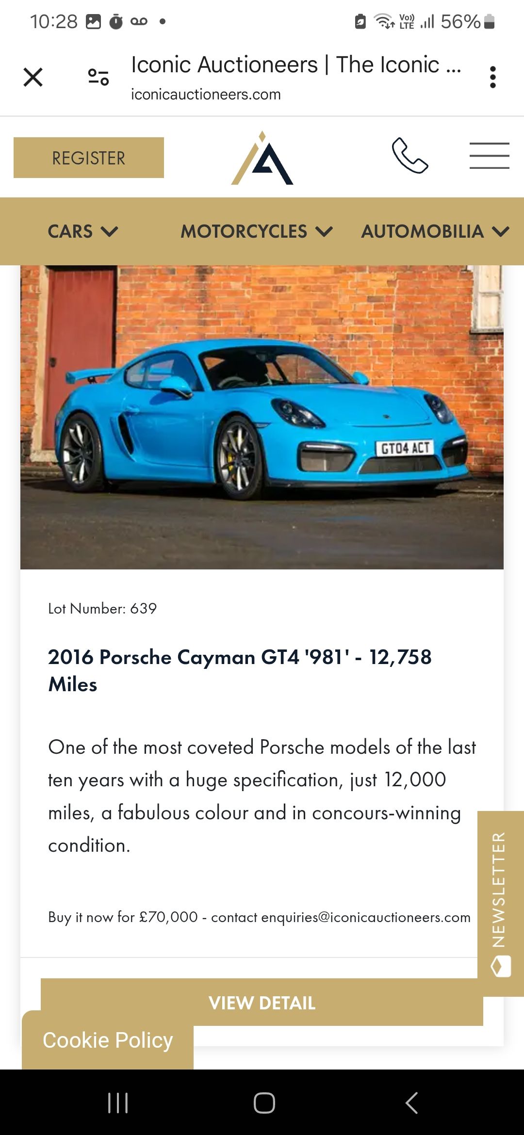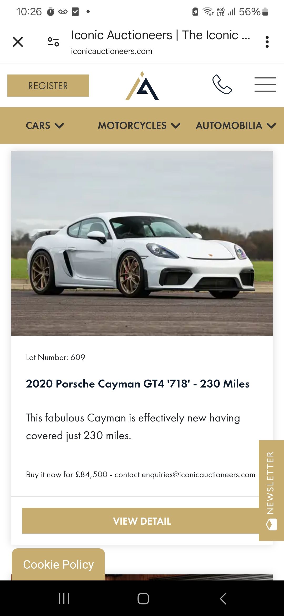 It finished at £65k+fees, so that's £74,750 for a basic colour/spec 2020 car.https://www.iconicauctioneers.com/2020-porsche-cay...