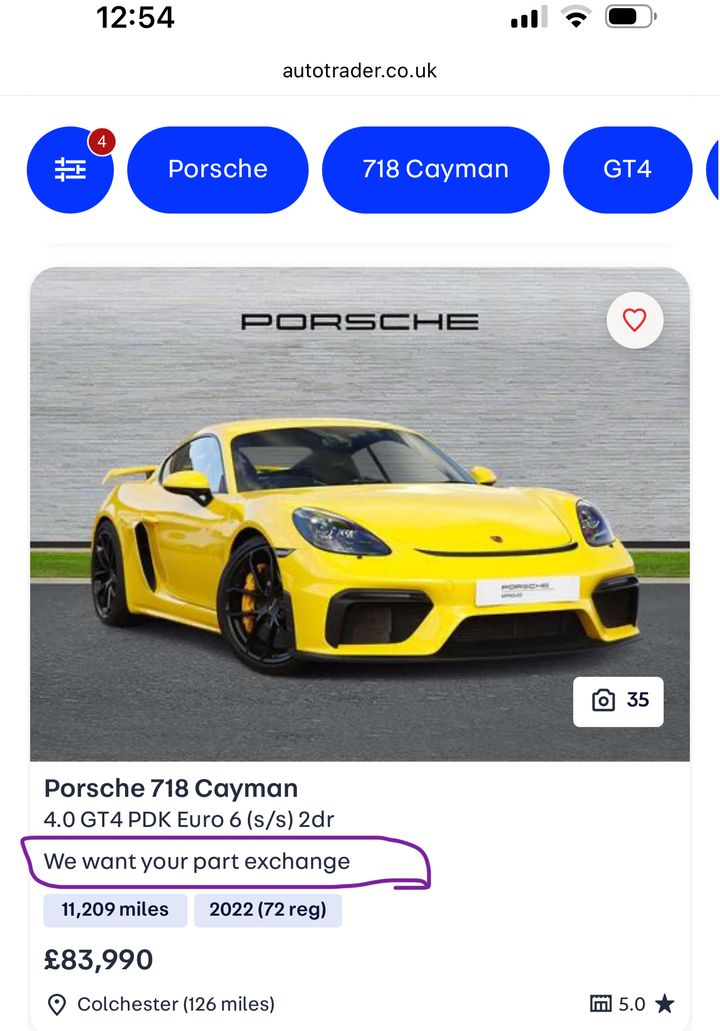 I can t speak for the overall 911 GT market as i m not close to it but if you look at the 718 PDK GT4 market i find it interesting you can buy a high spec late model 2023 with low mileage for let s say £84k - £88k vs a brand new base 718 4.0 GTS plus VRT for £80k or there are the last few well spec models over £90k plus VRT