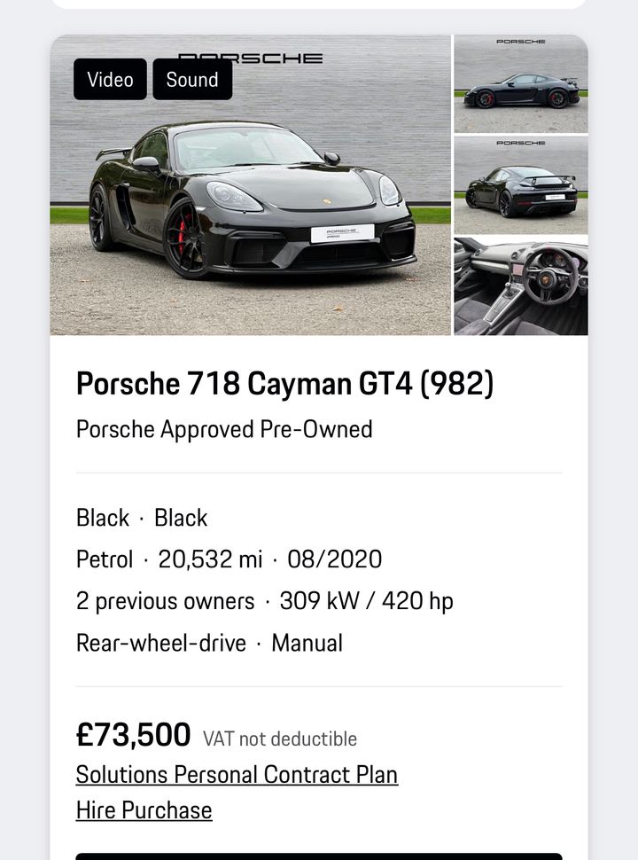 When I find the right car it will be looked after by my trusted Indy as it will be a long term keeper so an OPC warranty is not relevant. I ran my last GT4 (981) for nearly 5yrs and whilst it was under OPC warranty the whole time I never had a single issue. Yes, I'm aware of the usual suspect failure items along with the alternative repair options instead of replacing parts.https://finder.porsche.com/gb/en-GB/details/ZLML42...