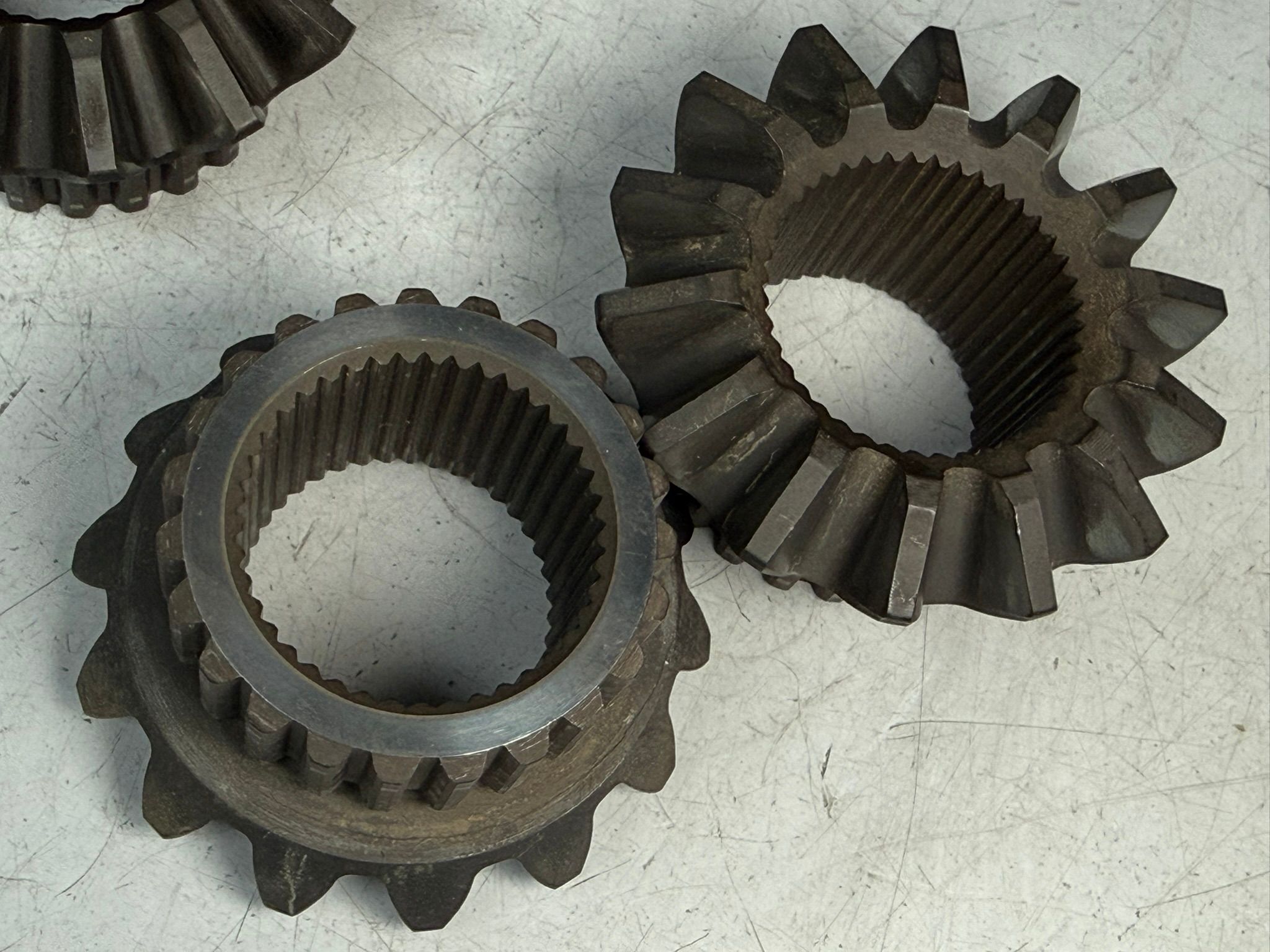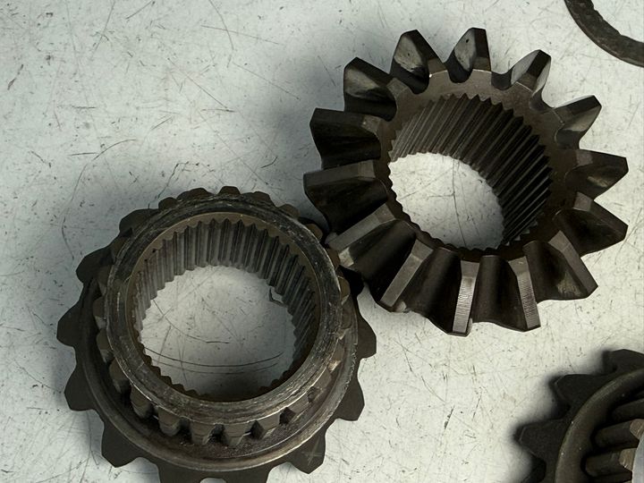 furthermore the original axle bevel gears show some wear on the outer side facing the washer. the ones i have here look better.