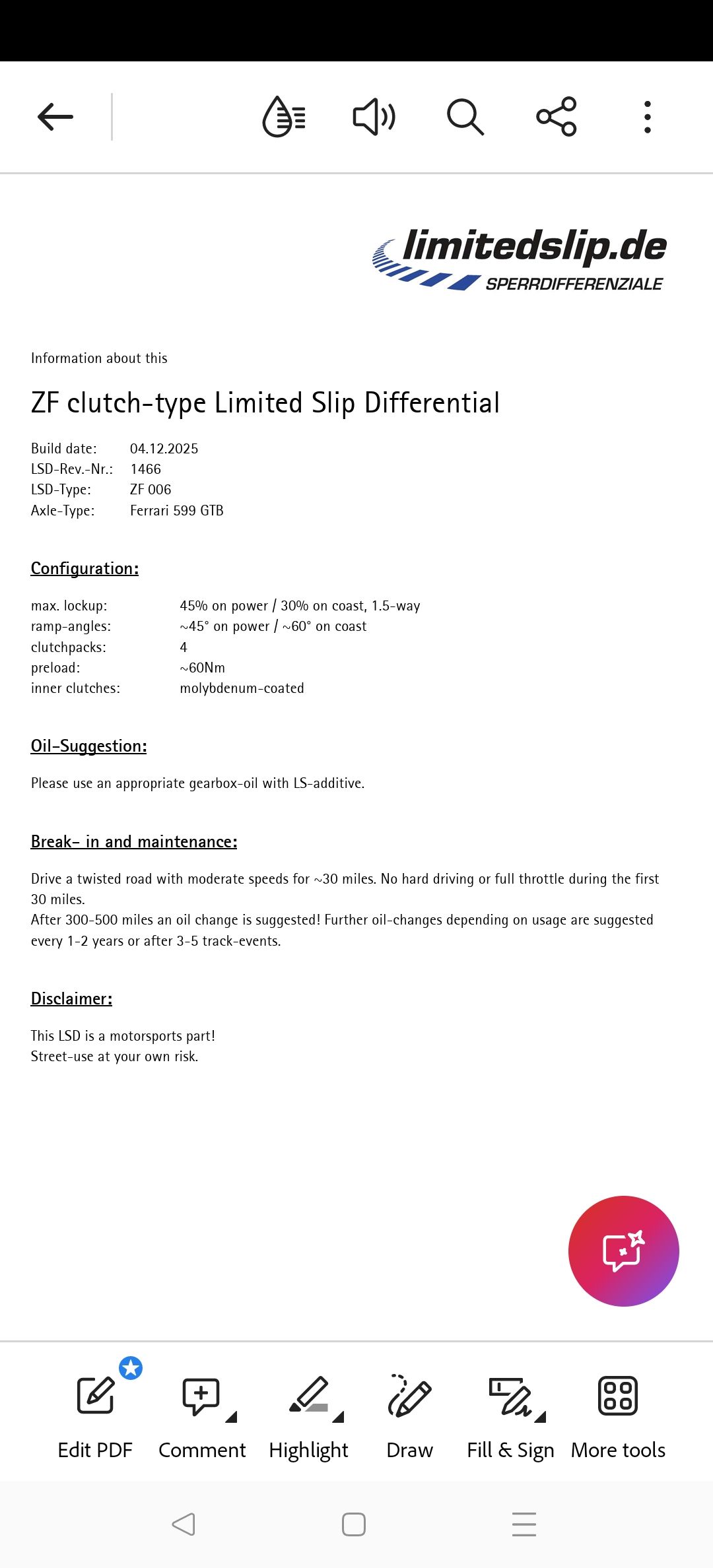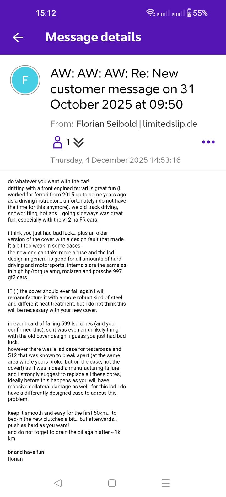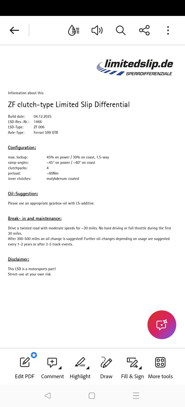 Florian has been so detailed in ensuring the LSD is built correctly and adapted to what I want to get out it performance wise.