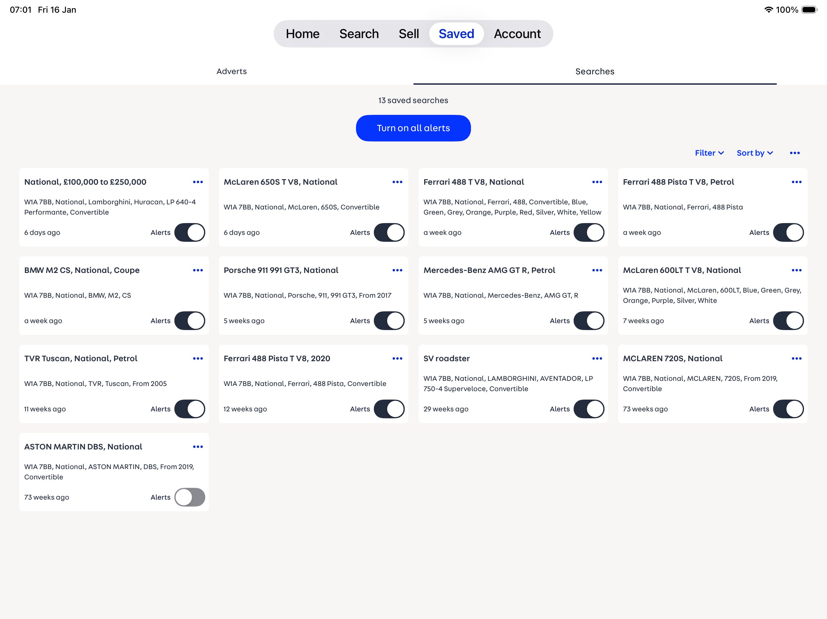 This is a chunk of my current car searches, out of all of them, only 2 or 3 have sold and only 1 added, in the last 4 weeks